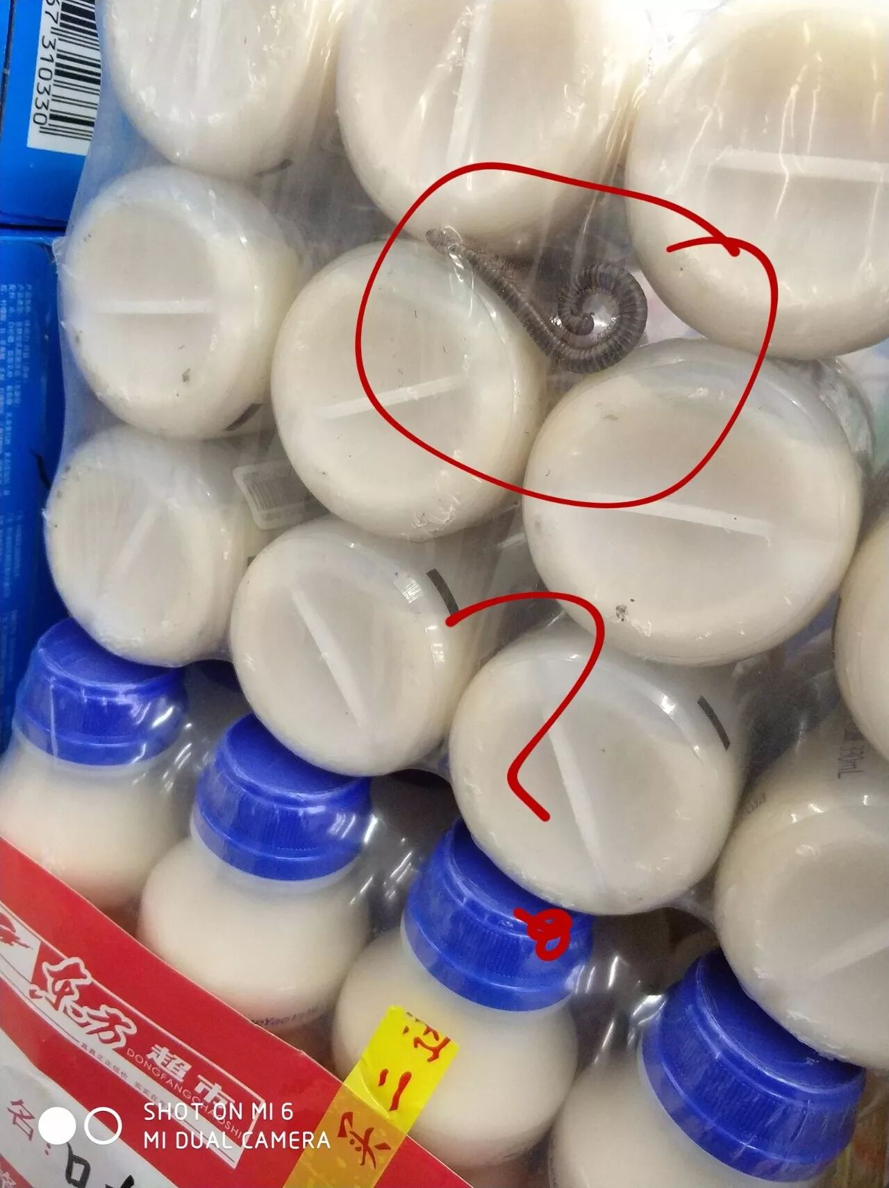 微友@卷儿爆料:东方超市里看到这打折的味动力,打折原因是因为时间不多了快到期,所以能理解,因为价格真的很实惠,打算搬一箱,看看日期打算选择新鲜一点的,可是这个箱子里也太恶心了吧!
