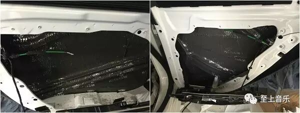 前门板内外做隔音处理,这是里层的,外面第二层密封的照片漏掉了。