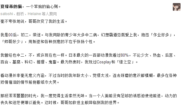 下面是小编整理自:知乎 不同人喜欢哥哥,给自己带来的变化:
