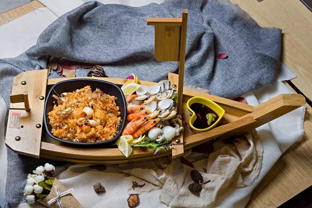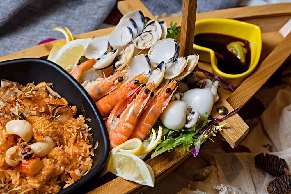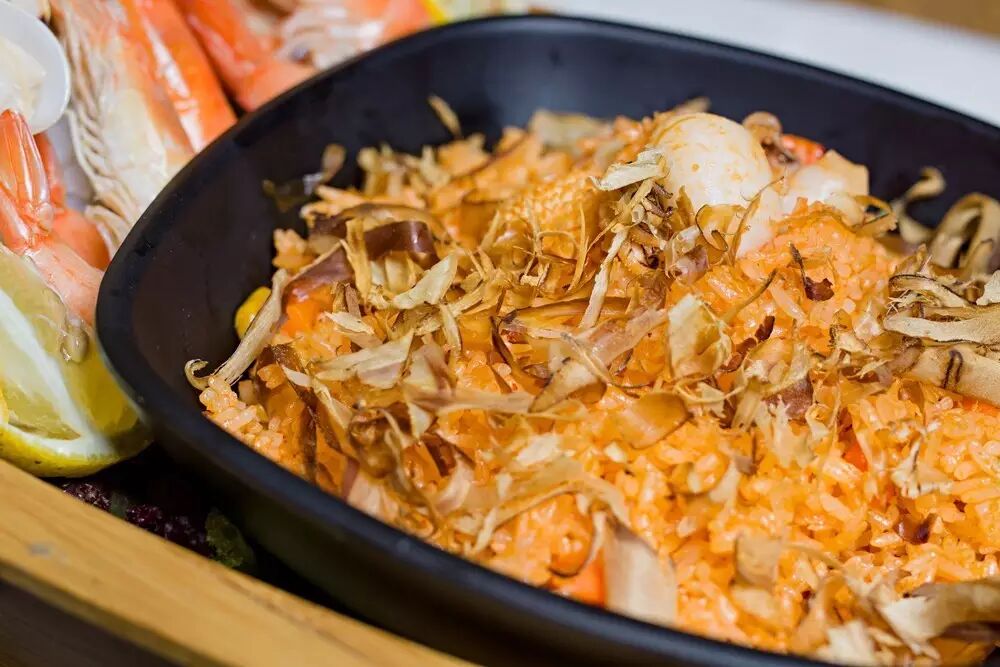 习惯了中式的米饭炒饭泡饭,不妨来尝试一下西班牙海盗焗饭吧。金黄金黄的焗饭无疑勾起人的原始吃欲,加上鲜虾、白贝、墨鱼仔的海鲜搭配,令人胃口大增。