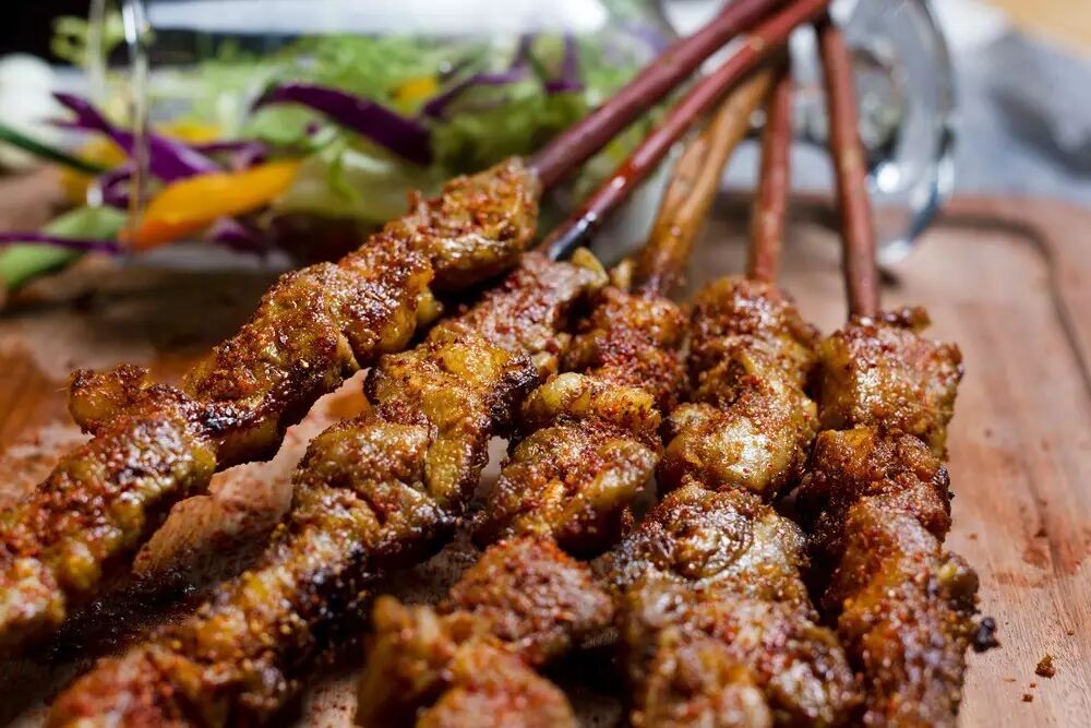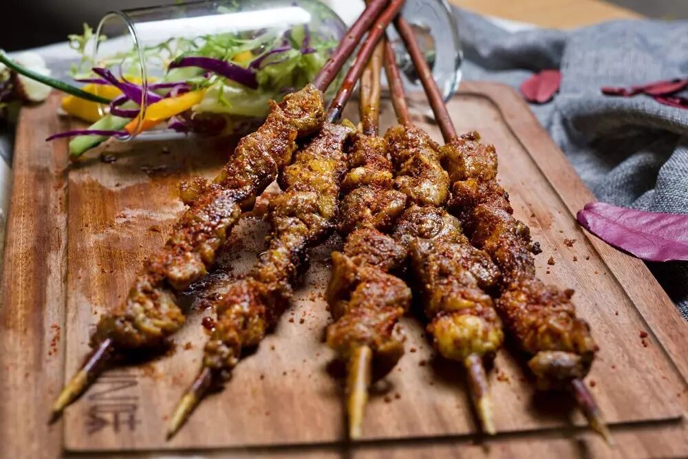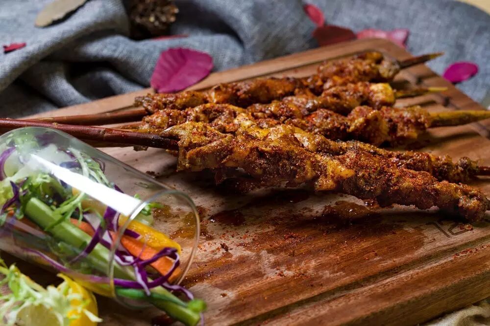 羊肉串的羊肉选用的是130斤以下的高原羔羊,然后采用西亚高原地区特有的红柳枝串连起来再进行烤制,使到羊肉串弥漫着红柳枝的淡淡清香,吃起来让人齿间留香。而这些红柳枝更是需要每个星期从西亚高原地区订购再空运来的。老板告诉我们,只有跟羊脂一起吃,才会令红柳枝的香味发挥到最大。