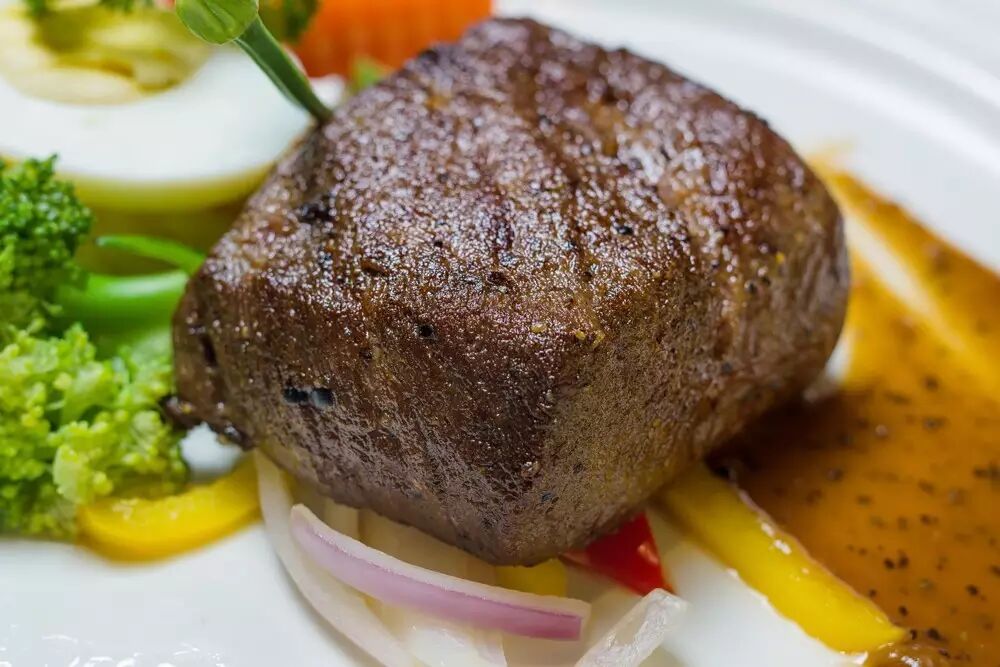 把牛扒装入真空袋中,再用低温料理机蒸煮65分钟,脂肪融化,油脂与肉质形成胶质状态,低温牛排的水分流失仅在5%-8%之间,肉质显得尤为粉嫩多汁,而且能保持食物的原汁原味。