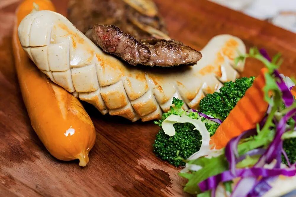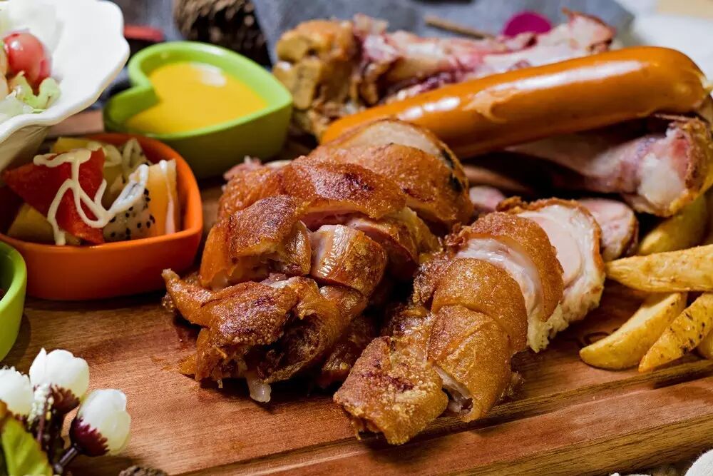 餐厅选用脂肪最厚实的猪后肘,在风干熏制过后进行烤制,令猪手的味道更足!入口还能感受到软糯的肉质,弹性丰富,再点上些酱汁,没有任何的肥腻感。