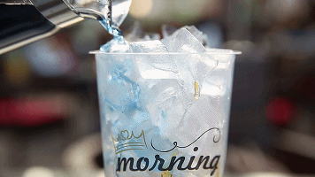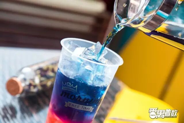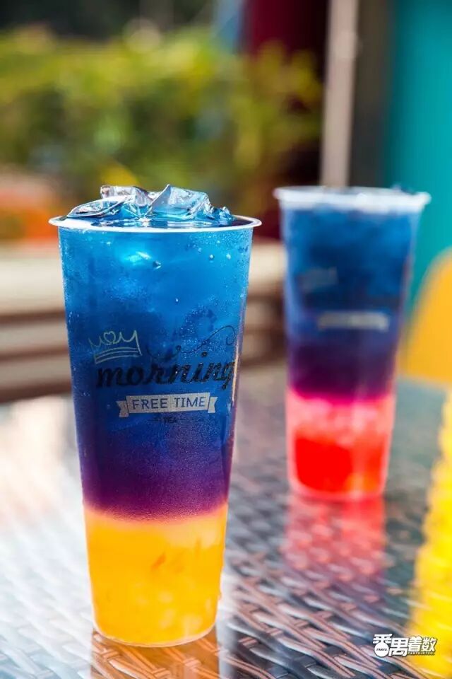这杯叫【夕阳】,蝶豆花茶、西柚&寒天,共三层。茶味相对重些,微微带点西柚的酸甜,很清新~