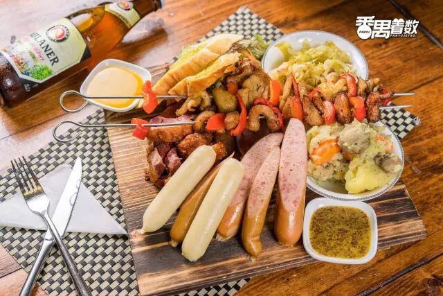 德国脆皮咸猪手、不同口味的德国香肠、烤肉、薯泥、酸椰菜,五种关于德意志的味道,分量十足,让你一次畅游德意志。