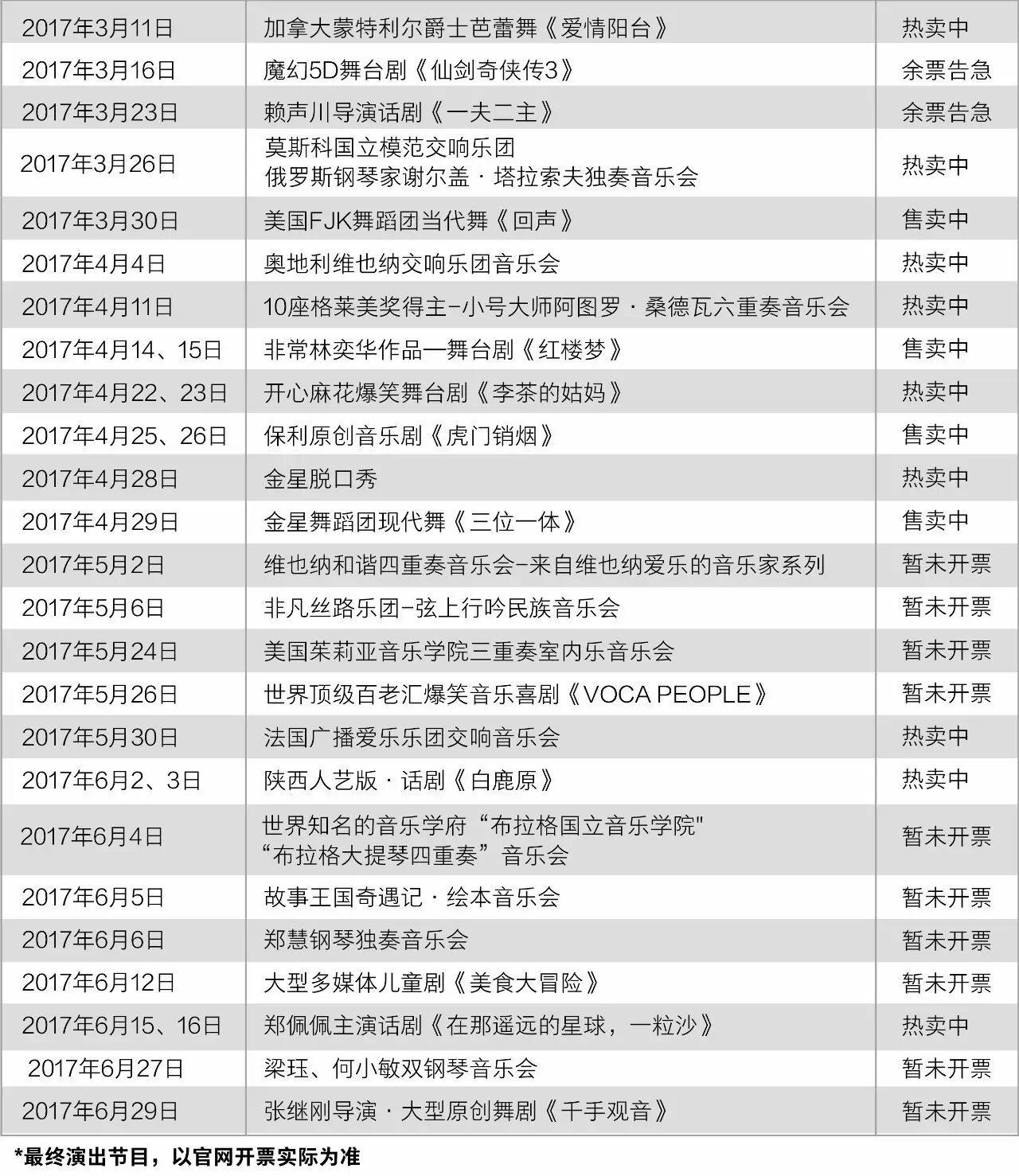 *最终演出曲目及顺序以现场演出为准