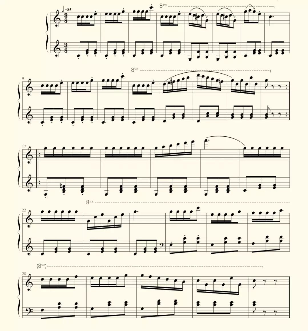 【读首诗再谈“琴”】轻拨慢捻, 过一种极简的生活吧!|【音乐外卖】 唯有音乐与美食不可辜负|【珍藏帖】史上最全的巴赫家族清单|一段视频告诉你,传说中的“音乐细胞”到底是个啥?|【音乐趣闻】建筑师与画家笔下的音乐|你是否见过在山脊上画音符,聆听山脉唱歌?|【音乐百科】音乐学院附小---《钢琴课程大纲》|莱罗伊·安德森:小小打字机(附音频、视频、琴谱外加讲解)|【中英双版】跟着郎朗学跳音(内附跳音要点与示范图)|【音乐趣闻】中世纪的音乐播放器,你听过吗?|让你视唱能力瞬间提升的八分钟----八分音符在每小节中255种变化|【特别收藏帖】车尔尼849流畅练习曲(附音频、视频、琴谱外加讲解)|【音乐趣闻】用阿卡贝拉=͟͟͞͞唱=͟͟͞͞出=͟͟͞͞来=͟͟͞的交响乐|【中英双版】跟着郎朗学琶音(内附琶音的进阶指导与琴谱)|【中英双版】跟着郎朗学八度(附上八度从易到难的讲解与琴谱)|【中英双版】跟着郎朗学音阶(内附常用大小调音阶指法表)|【好歌分享】放倒熊孩子的音乐作品感动到飙泪!|香港青少年管弦乐团的快闪演出帅气高燃|【特别推荐】把知音带回家---- 我想讲个“选琴”与“选车”的故事|【每日美听】 莫扎特:小星星变奏曲K.265/K.300e(附音频、视频、琴谱外加讲解)|
