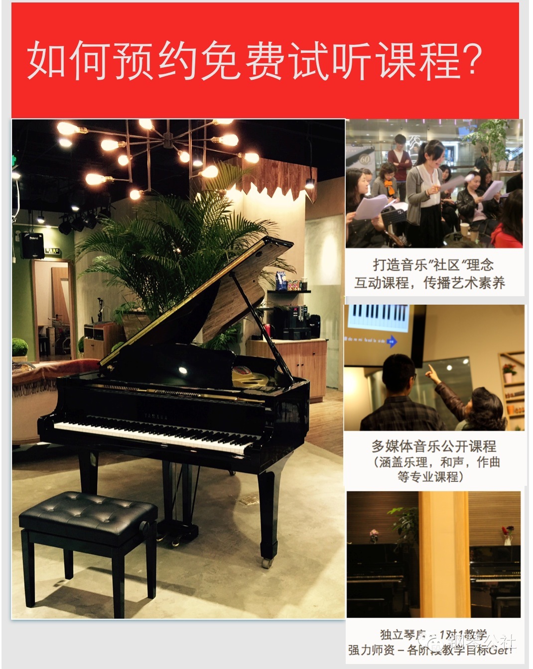 专业私教授课 互动增值课程 0基础 梯度进阶 独创教材 O2O 让音乐课堂 走进家1对1