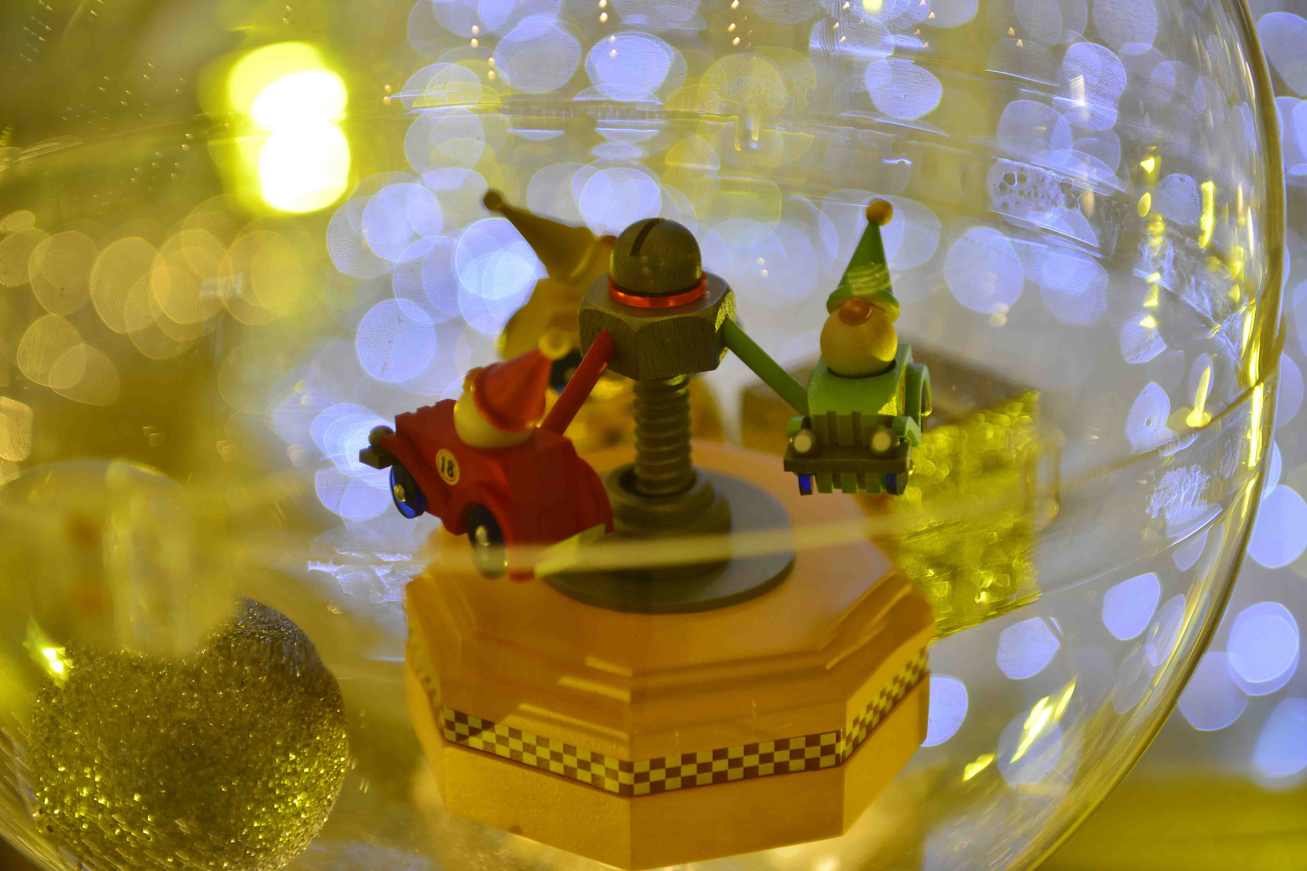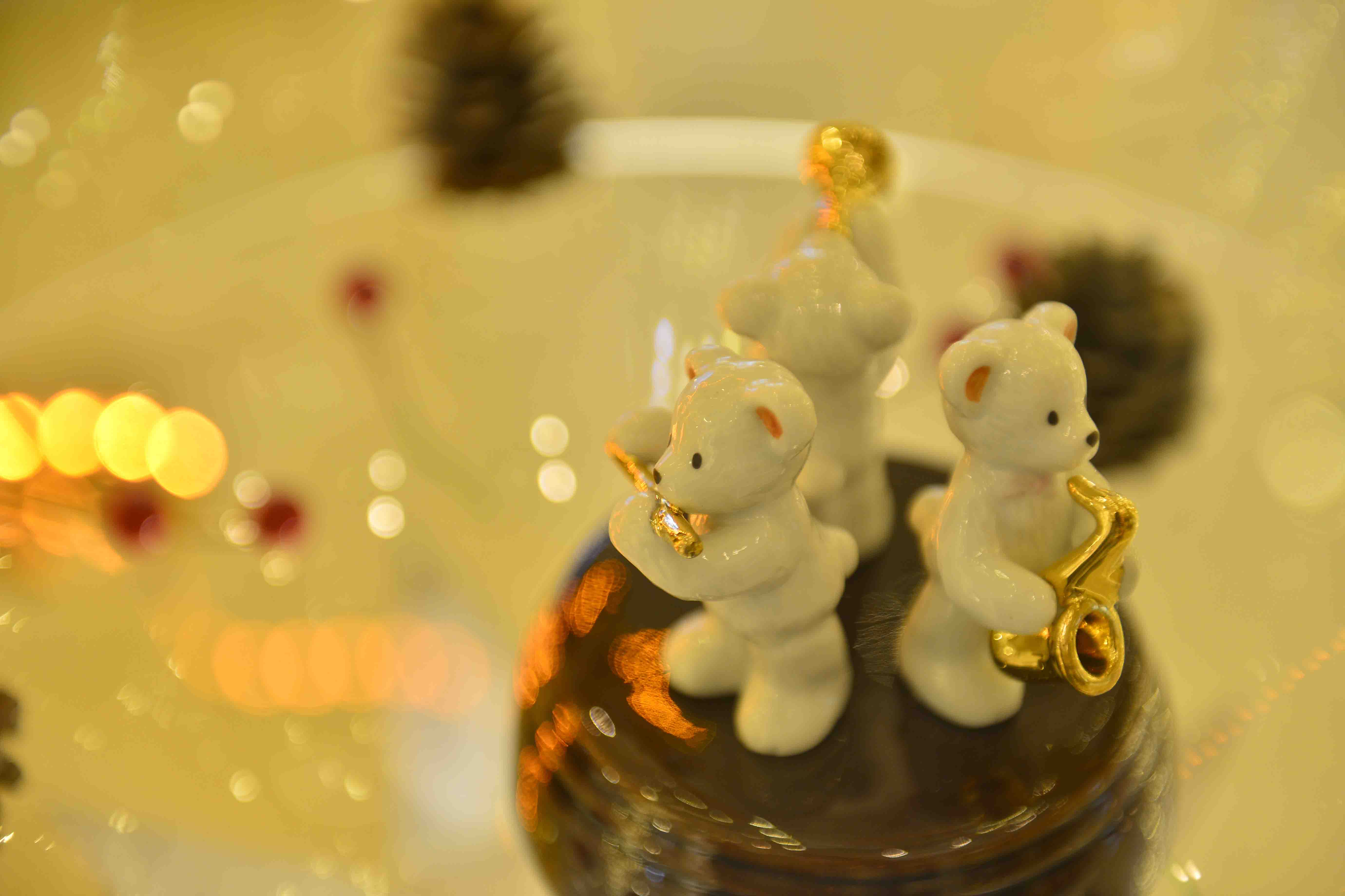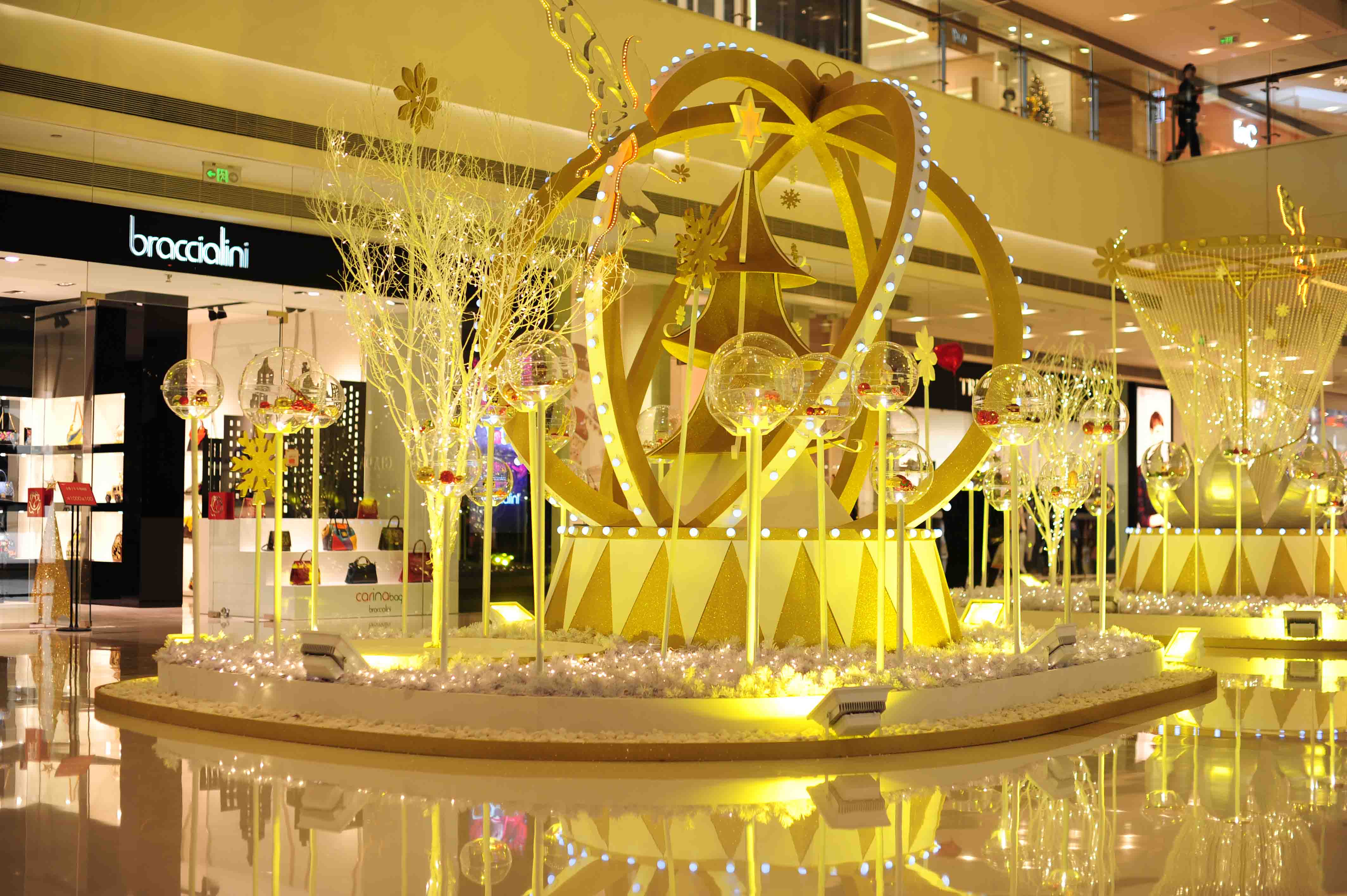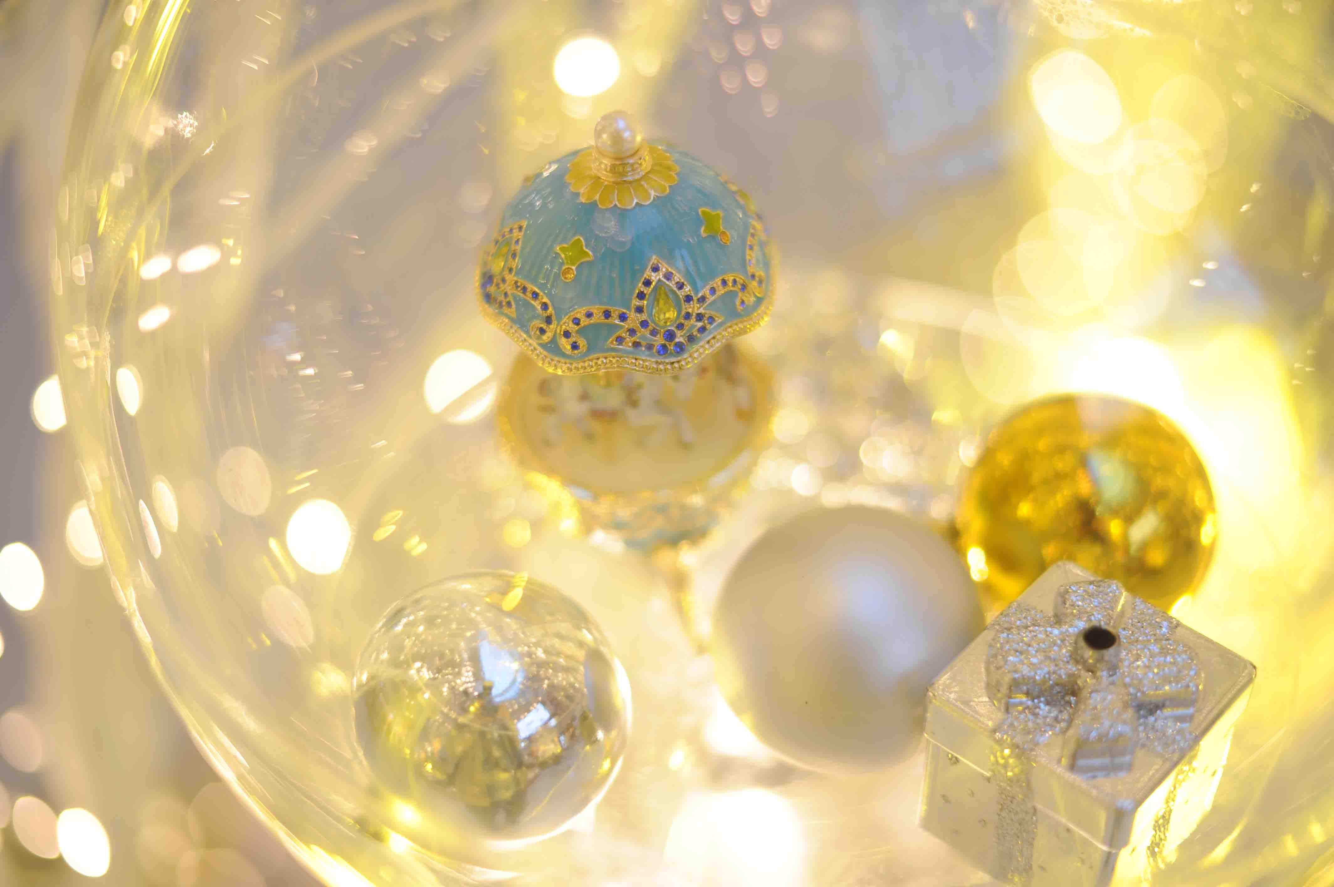 在万象城的圣诞美陈中镶嵌了许多晶莹剔透的水晶球,每个水晶球都守护着一只来自遥远北海道的小樽八音盒。
