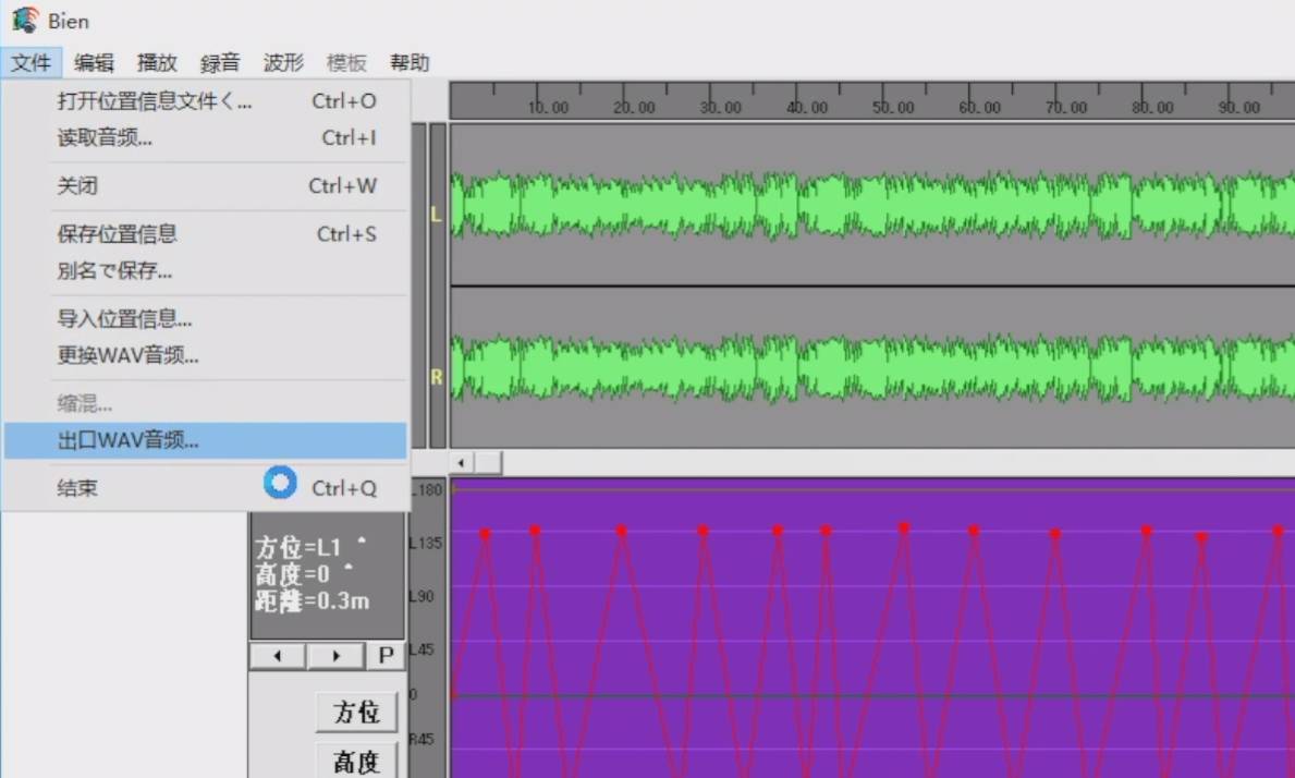 音乐编辑好之后,点击下方的停止键,然后点击左上角的文件,选择“出口WAV音频“,选择保存路径,3D音乐就保存好了,然后试听一下吧~