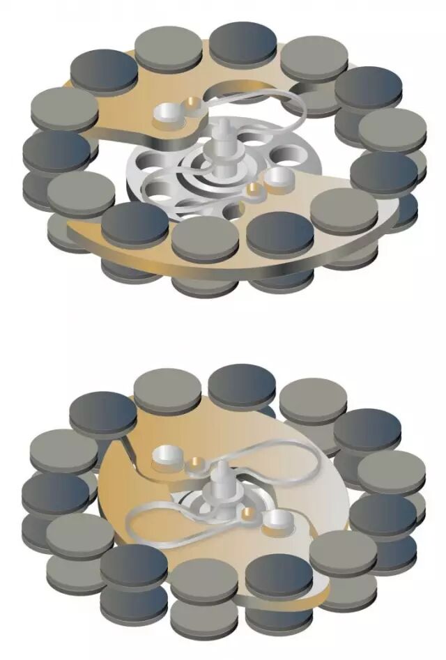 除了音量之外,为了令音乐得到更准确的演奏、同时产生更为悦耳、并且无杂音的效果,名为“磁力调节器”的发明应运而生。宝玑发明创造的“磁力调节器”大胆地将磁性融入腕表之中,利用磁力调节器不存在摩擦、噪音干扰与能量消耗大的特点,获得更和谐、更动人的音乐表现,同时进一步提高了腕表的走时精准度。