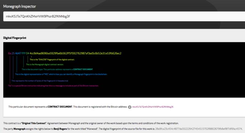 同时Monegraph的界面还能帮助你了解其在比特币市场中的hash值