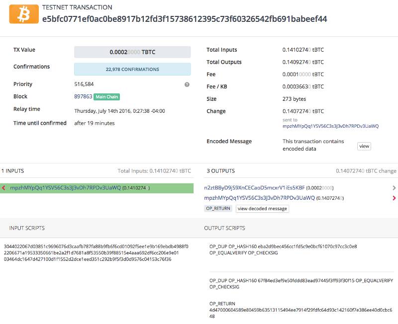 比特币TestNet环境,人们可以在上面搜索并查看登记信息