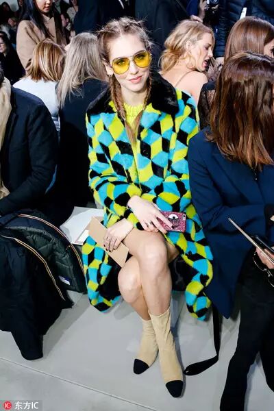 一向走在时尚尖端的宇宙博主在看时装秀时也梳了拳击辫,在一众飘逸的长发里也是非常地出彩,有一种摩登的俏皮。