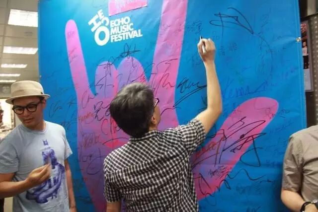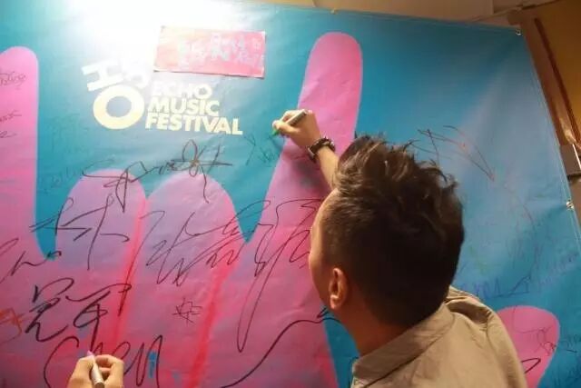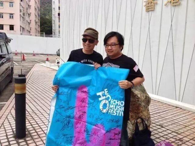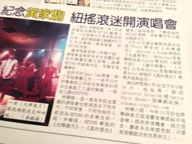 两位音乐巨人Beyond 成员黄家强和填词人刘卓辉在海报上签名。家强好像挺喜欢我们的海報 xD前BEYOND樂隊成員黃家強親自為我们打氣。這是家強給紐約Beyond/家駒致敬音樂會的話:“我聽說Echo Music Festival為家駒做了一個致敬音樂會,我很感謝你們為家駒了這麼多的事。知道你們能夠為了理想堅持做自己想做的音樂,讓我覺得很開心。去到美國、紐約這麼遠,家駒的聲音仍然可以由你們延續下去,作為家駒的弟弟,我很感動。最後,希望你們要加油、努力,即使在香港這麼遠我也一定會支持你們。”