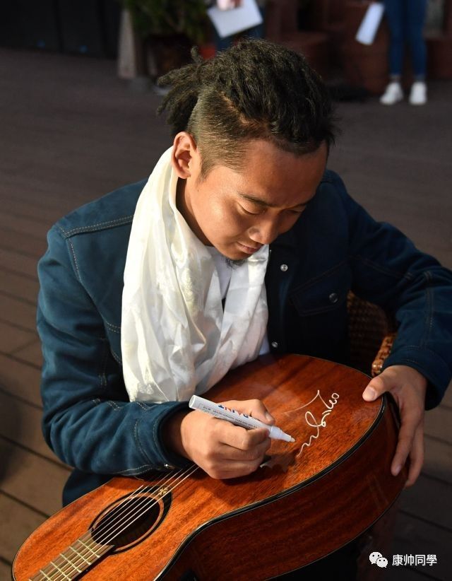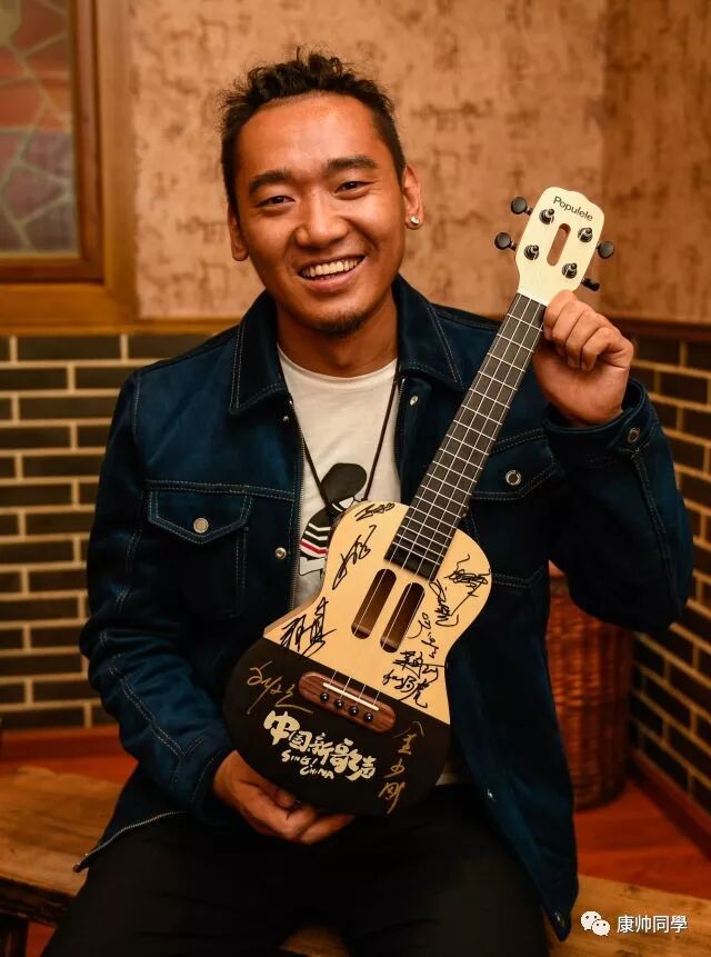采访中,扎西平措一次又一次提起导师,并对导师的礼物——一把写满“欢乐战队”成员签名的尤克里里——爱不释手。