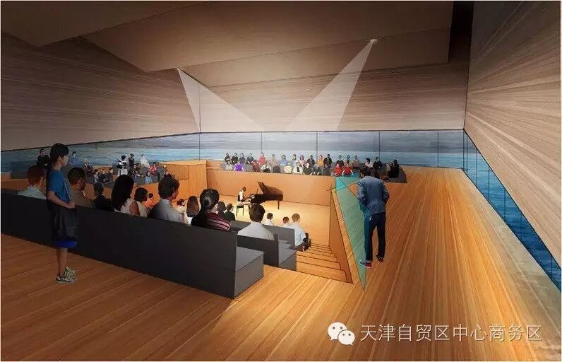 中心商务区相关负责人介绍,天津茱莉亚音乐学院依托于家堡的区域特点,选址更加优越,很多在纽约不能实现的理念将在天津实现,同时也融合了更高品质和更加现代化的设计。如坐落在校园公园中和海河滨步道的教学空间,使室内外空间有机结合统一,是跨界教学的创新之举,旨在让学生更多地感受自然给音乐带来的灵感;再如学院建筑外檐设置了超大LED屏幕,学院内的任何演出都可通过屏幕与市民共享。