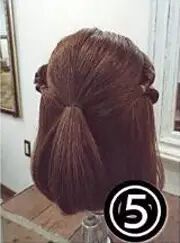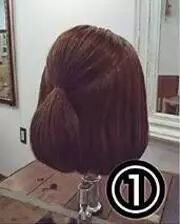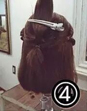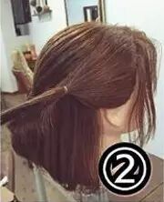 Step4:左侧重复步骤二三,并与右侧的发束在步骤一发束的下方合并,用皮筋扎好固定。