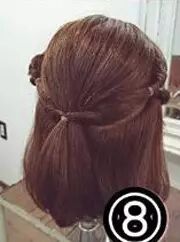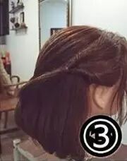 Step3:将右侧扎好的马尾辫从发束的中间翻转几次,呈现出图片所示的头发造型。