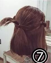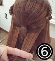 Step7:将取出的发束在马尾辫的上方合并,用皮筋扎一个小的马尾辫。