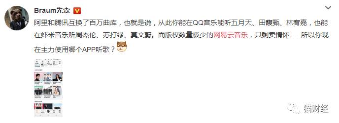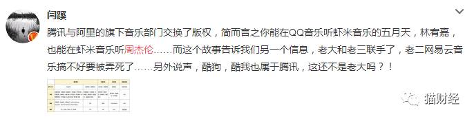 这样的结果也成全了腾讯音乐和阿里音乐的合作,名当户对,也算是“喜结连理”,版权转授权合作在目前市场和行业环境下大势所趋。