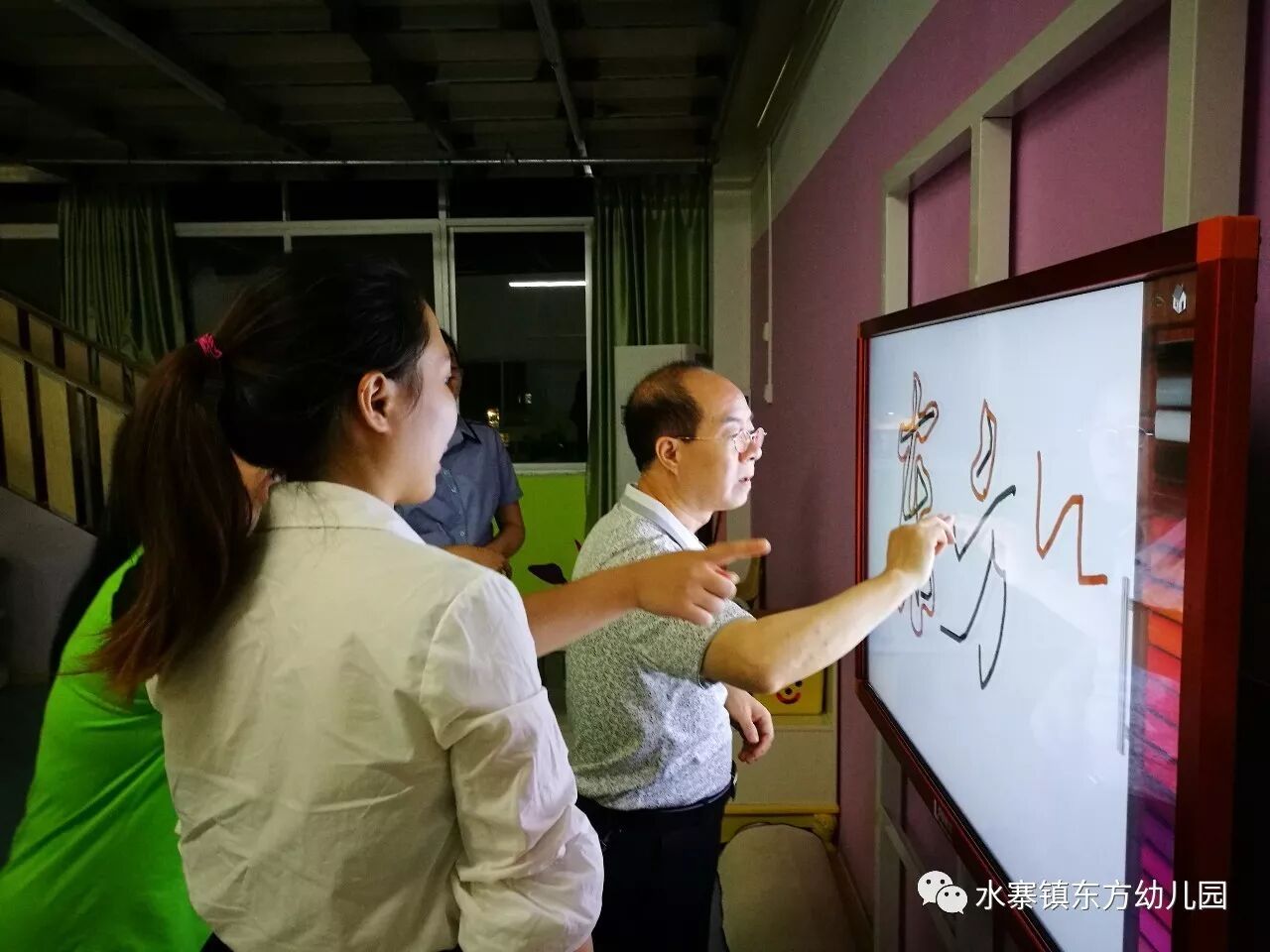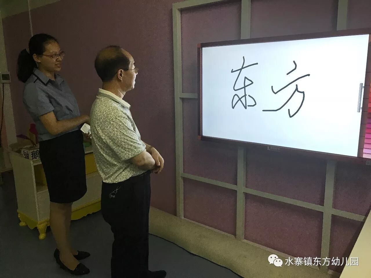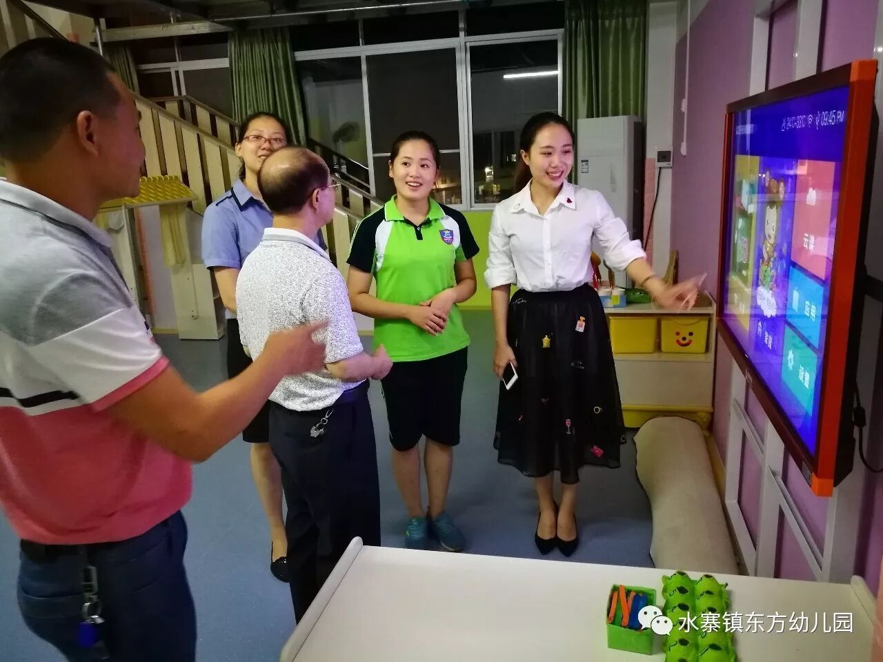 在视察工作中,彭强对我园的多媒体一体机给予了很高的评价:多媒体一体机教学,在课堂教学中,相互协调,相互作用,相互推动 ,可以使学生增强学习动力,调动学生的学习积极性,就教学方面可让抽象的教学内容变得形象逼真、容易被每一位学生接受,既省时又省力,还减轻教师压力。