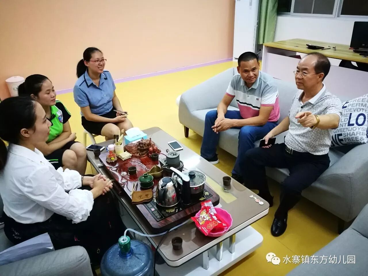 2017年10月11日,著名音乐家、客家山歌大师彭强应我园园长的邀请,到我园进行了指导。 先后视察了幼儿园的室内外环境创设、教育教学活动设置、大环境的设施设备、卫生保健工作等情况,深入班级察看了设施设备配置、班级环境、幼儿游戏活动等。并对我园的骨干教师做出了音乐方面的重点指导。