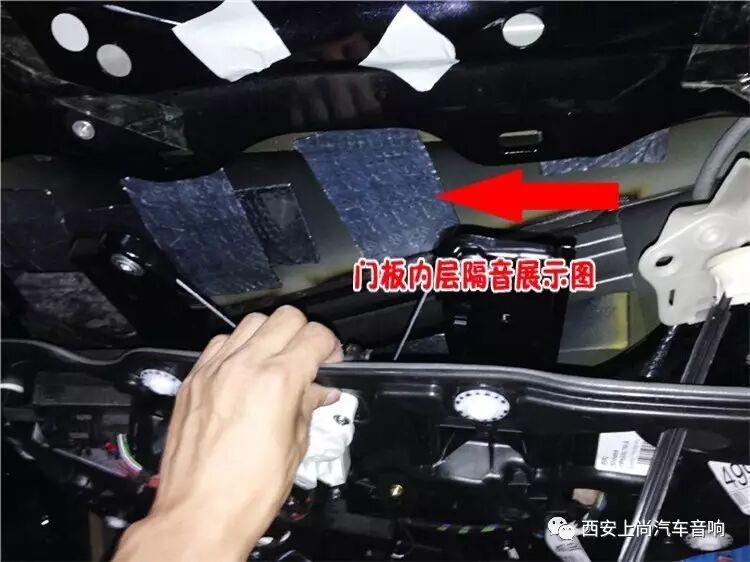 外层钣金上再贴一层隔音,不仅可以强化钣金,还能密封孔洞和缝隙,提升车门对噪音的防御能力。