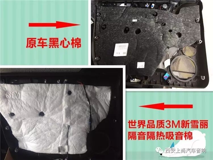 最后一层3M吸音棉处理,吸收残余噪音为音响发挥提供更佳的音质效果。3M吸音棉具有隔音隔热等功效,并且是唯一可以穿在身上的吸音材料,健康,环保,0污染是众多车主所信赖的隔音产品。
