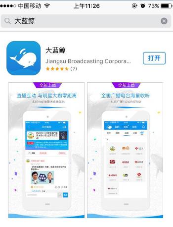 第一步,在苹果或者安卓的应用商店搜索“大蓝鲸”三个字,点击下载。