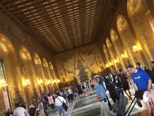 斯德哥尔摩市政厅,也是诺贝尔获得者举行宴会的地方,诺贝尔颁奖的地方在蓝色音乐厅,同时这里也是瑞典全国议会开会的地方,窗外的风景好美!