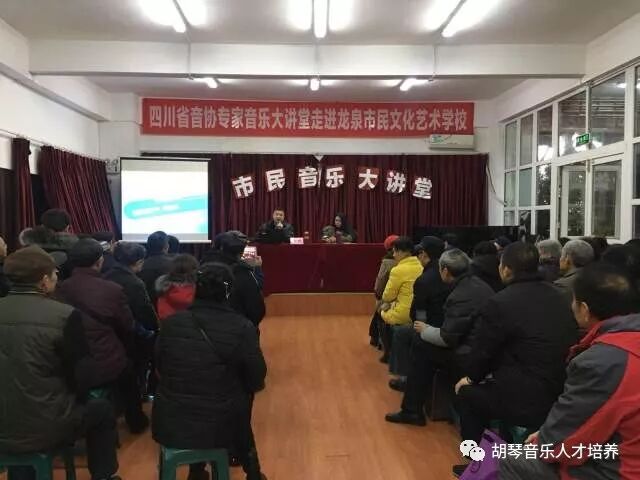 2017年12月27日,西南民族大学谭勇教授代表四川省音乐家协会前往龙泉市民文化艺术学校进行专家音乐大讲堂活动。本次活动以讲座的形式展开,并面向该校老年二胡班的学员。