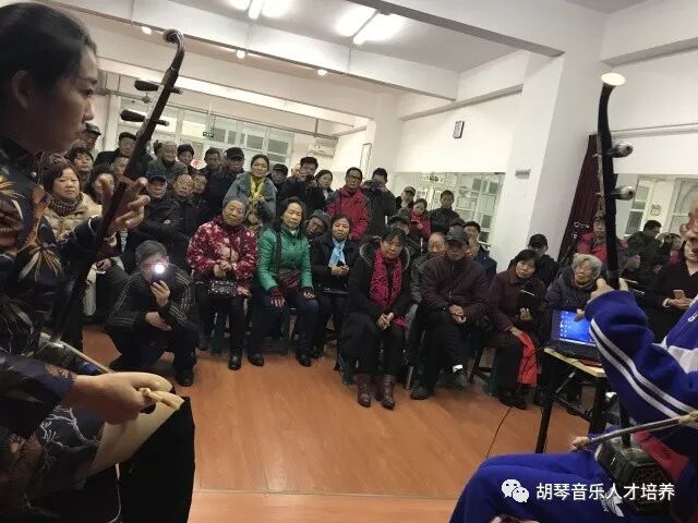 上午讲座结束后,学员们都意犹未尽。于是,下午两点大家再次相聚,几位学员登上讲台现场演奏,谭勇教授现场指导并示范,不仅指出了大家演奏中存在的问题,还为大家讲解了二胡演奏中常见的技能训练方法,如:揉弦、长弓练习等。学员们认真主动地听讲、学习、记录,及时地提出问题并展开讨论,使此次音乐大讲堂互动活跃、气氛热烈。最后,本次讲座在演奏展示、技法讲解与讨论中结束了,学员们纷纷表示自己收获颇多,并期待谭勇教授的下一次讲学。