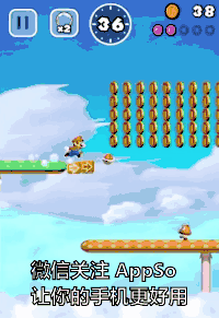 和传统的超级马里奥不一样,iOS 上的马里奥是自动向前跑的,不需要我们操作方向,单手就能控制。