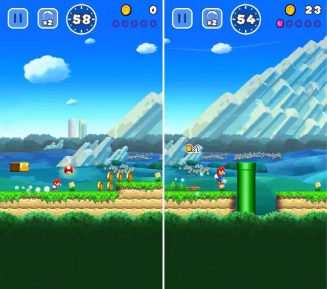 相比红白机上的超级马里奥,Super Mario Run 的游戏玩法基本不变,仍然以闯关、收集金币、躲避或消灭怪物为主。看看这些熟悉的砖块、水管、蘑菇……满满都是回忆。