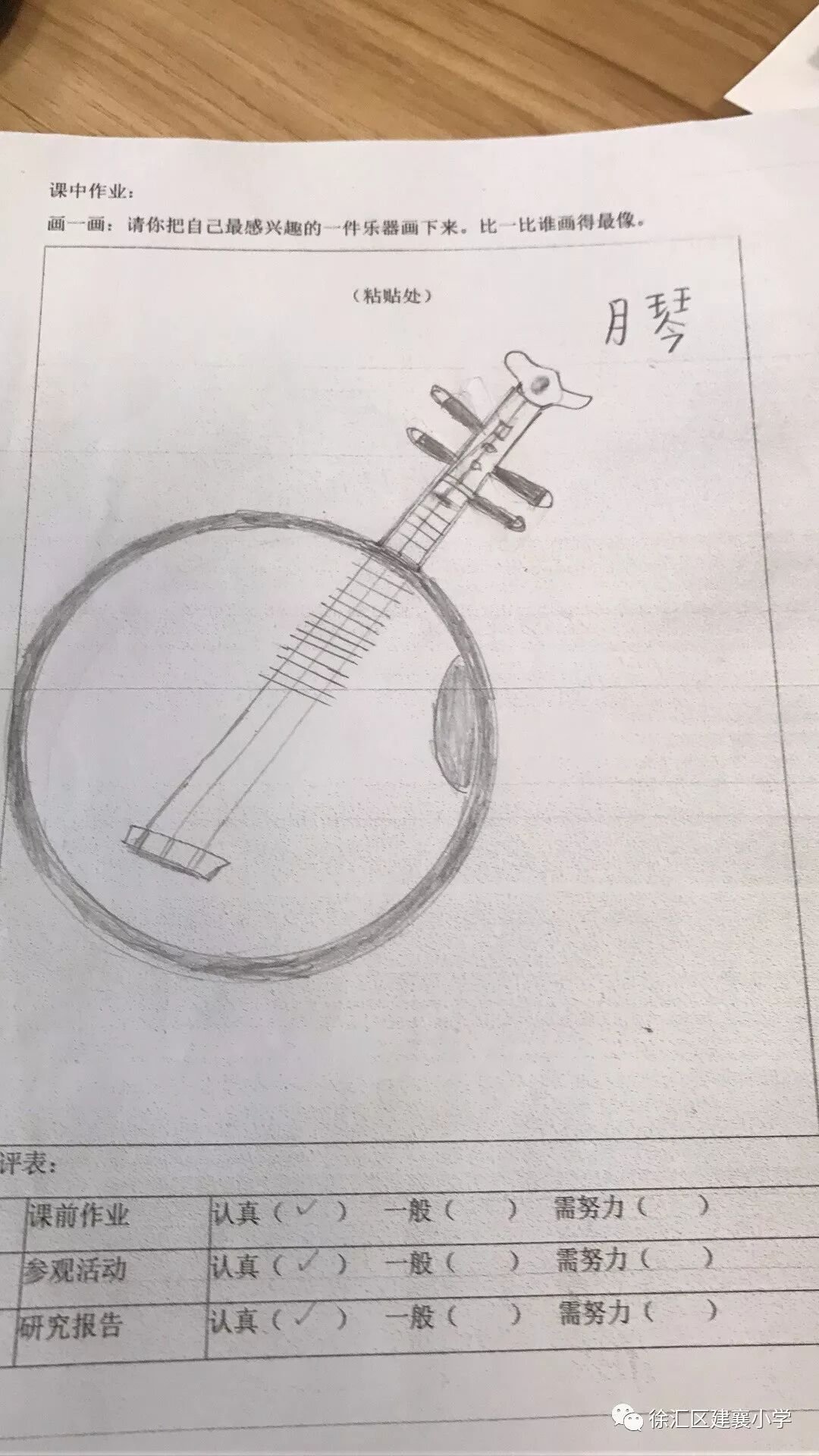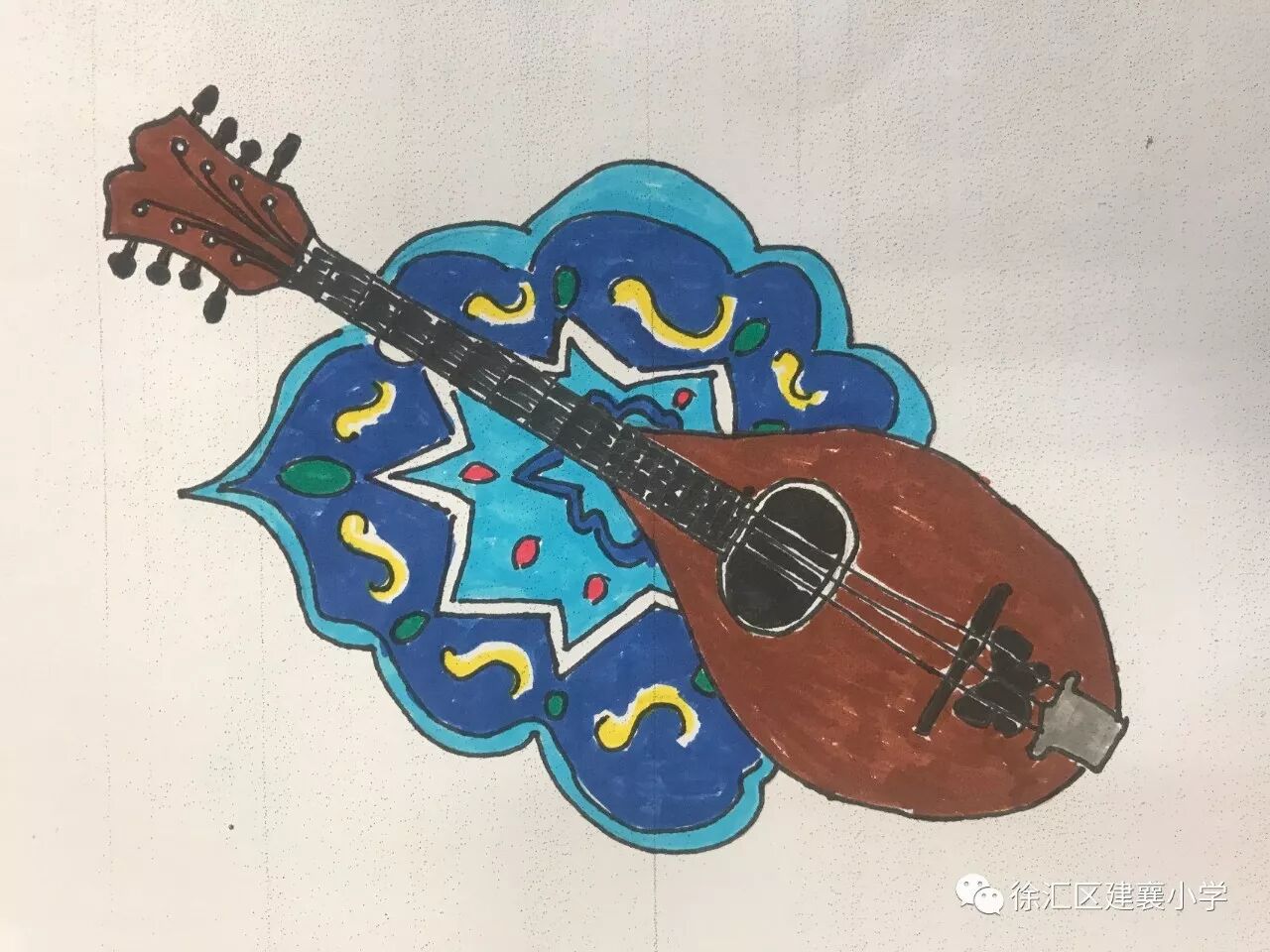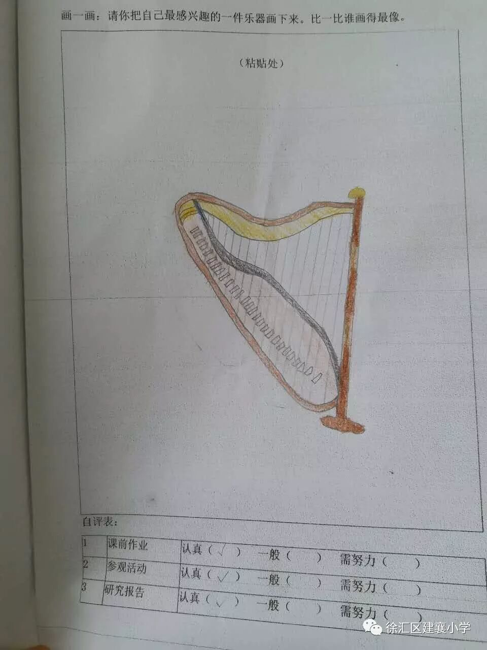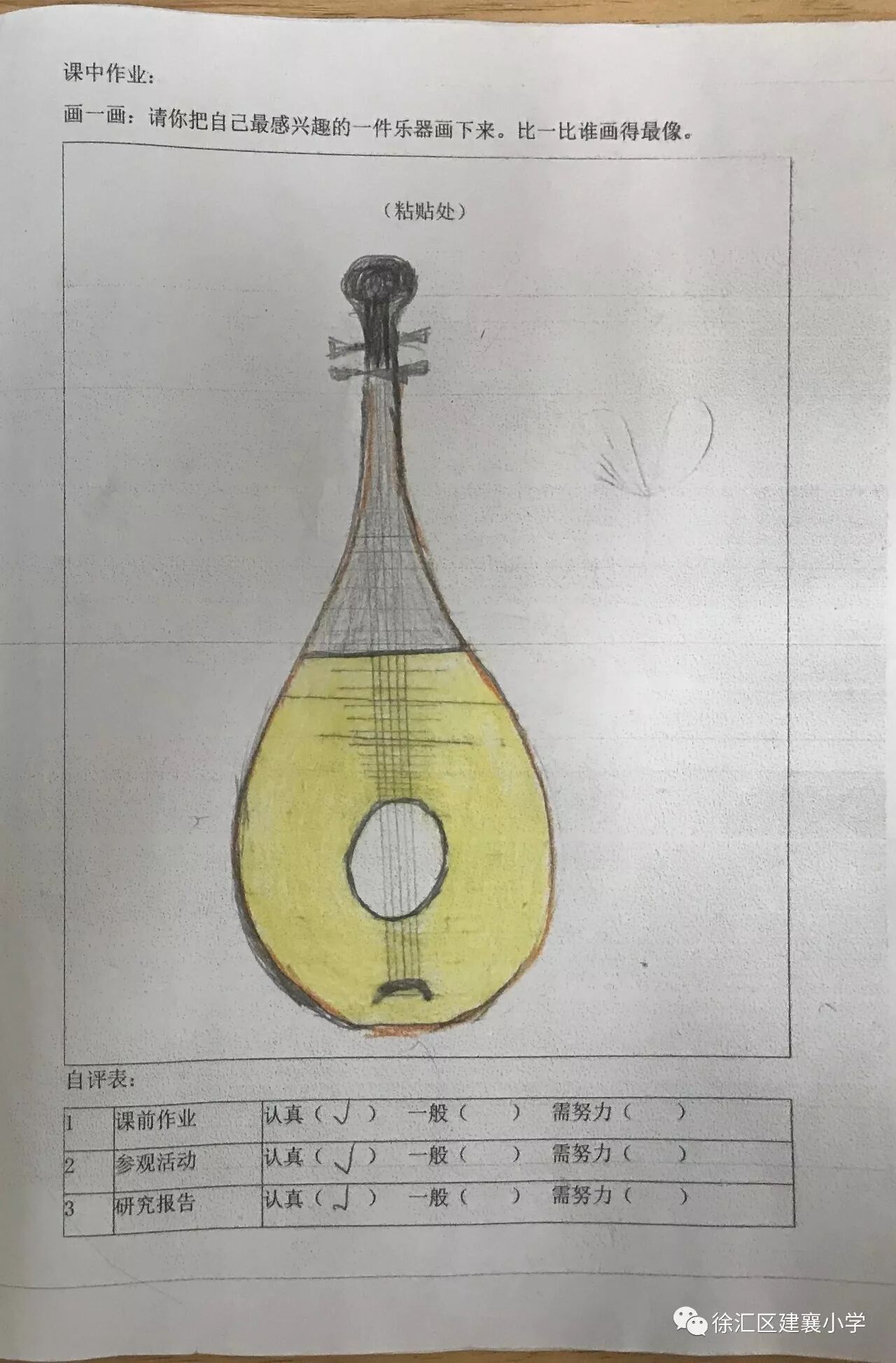 回到学校,孩子们用画笔把自己最感兴趣的一件乐器画了下来。