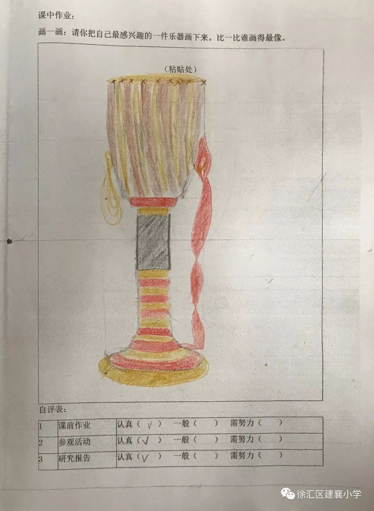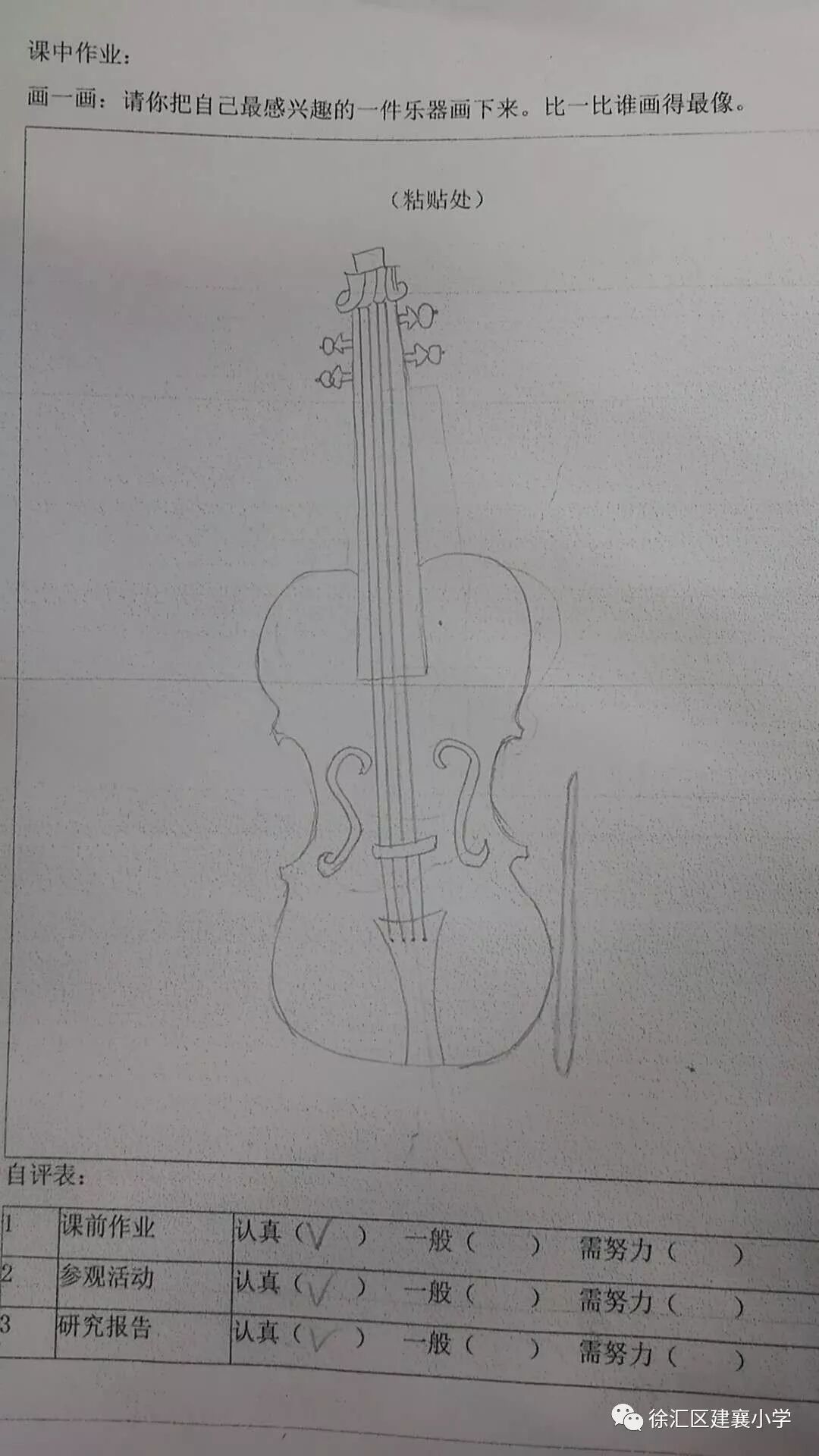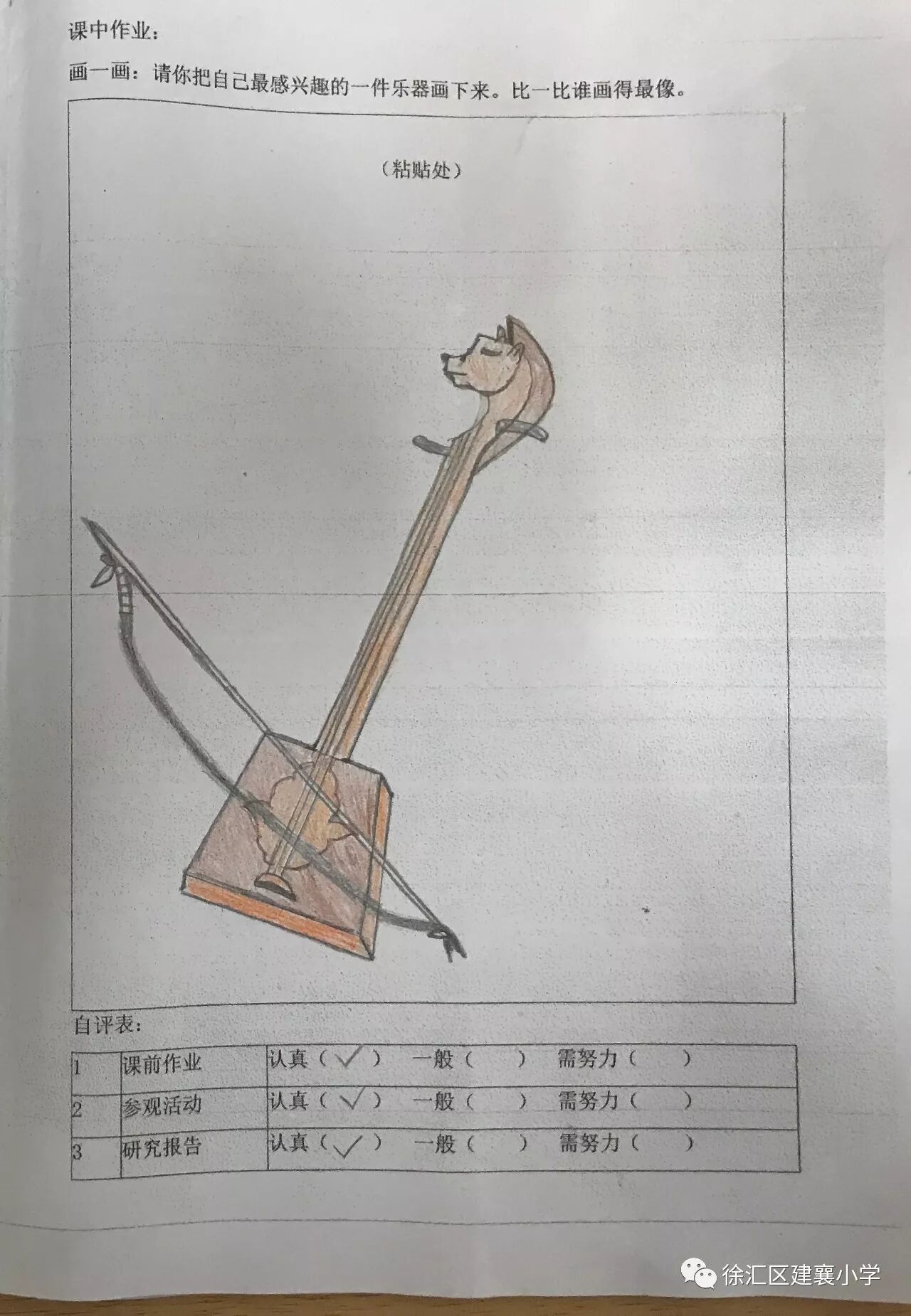 回到学校,孩子们用画笔把自己最感兴趣的一件乐器画了下来。