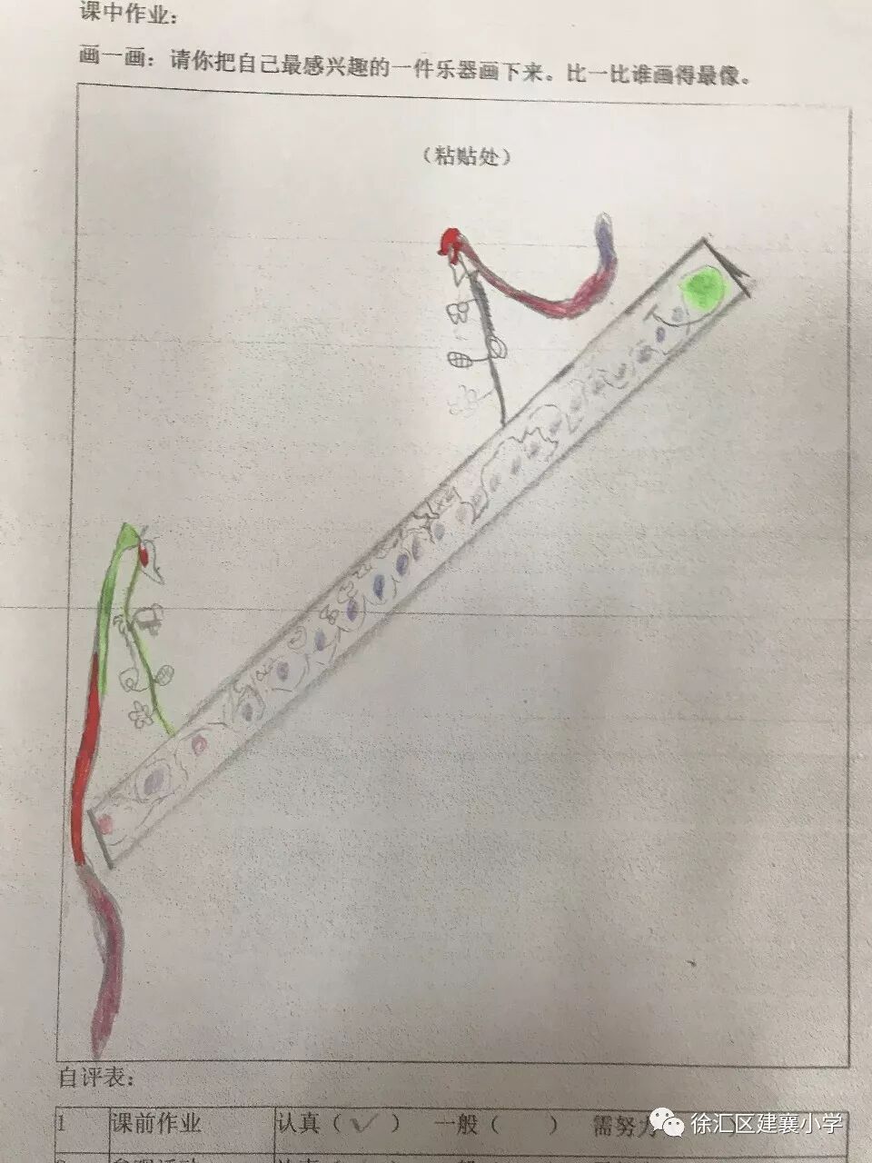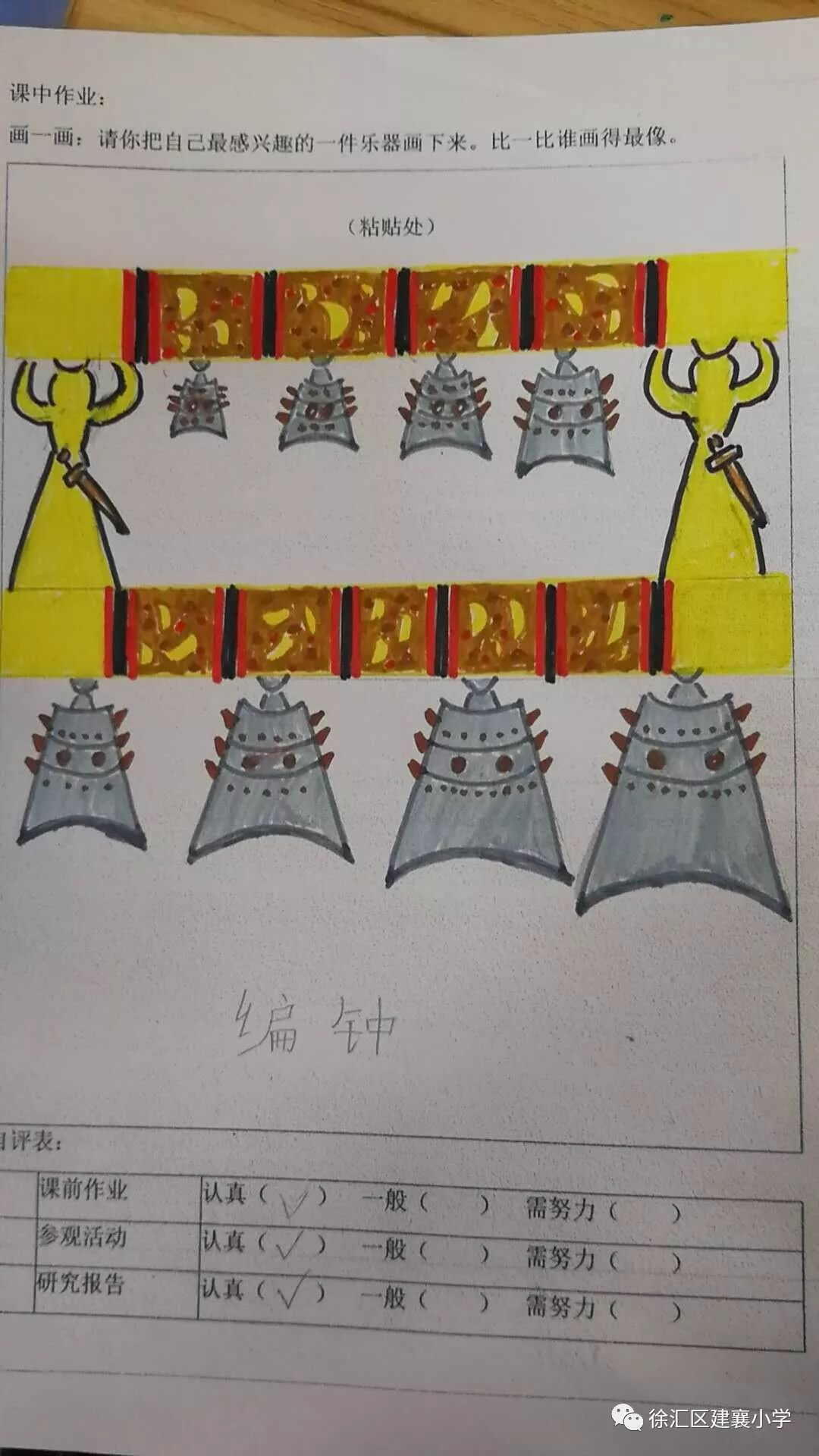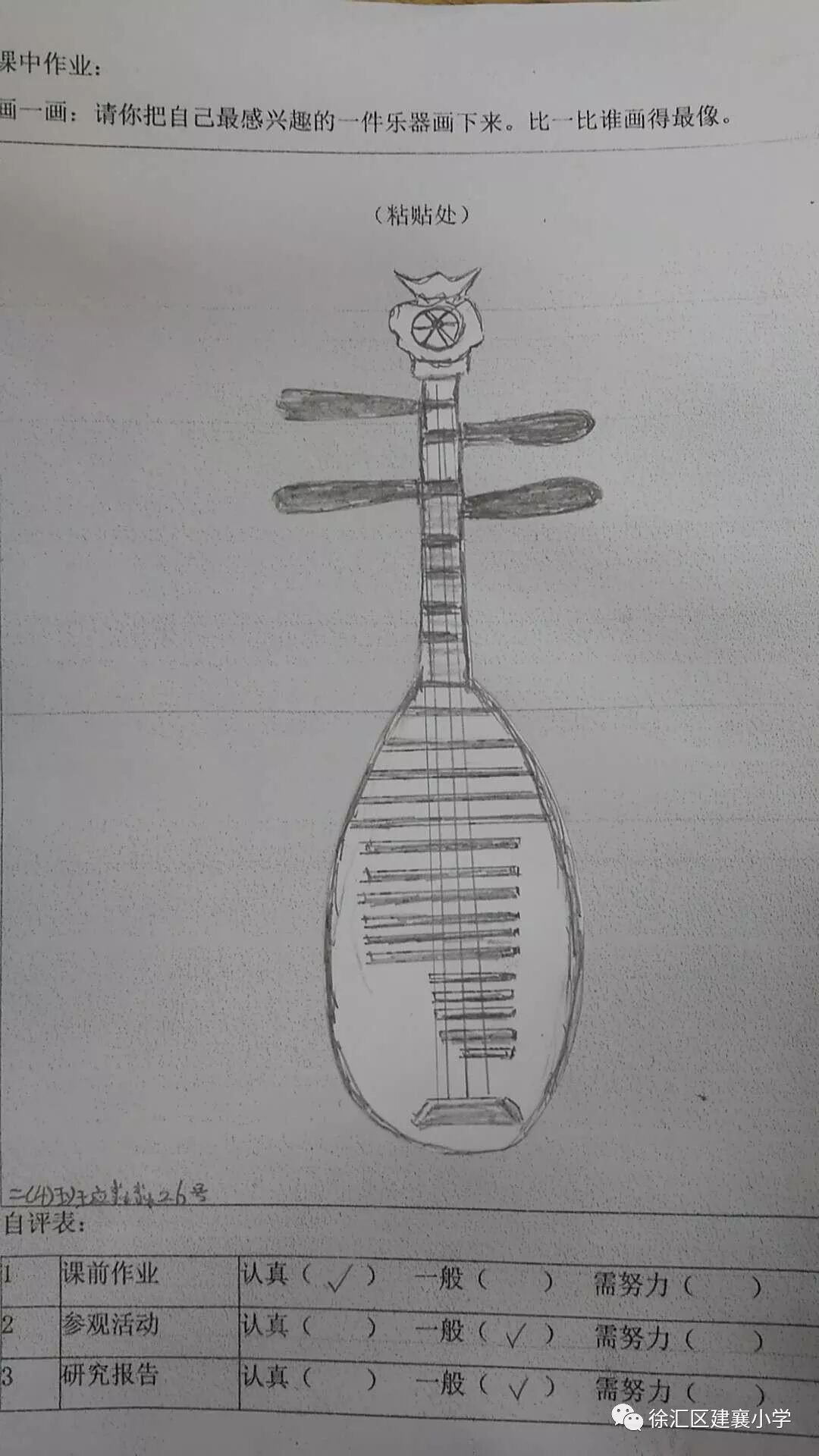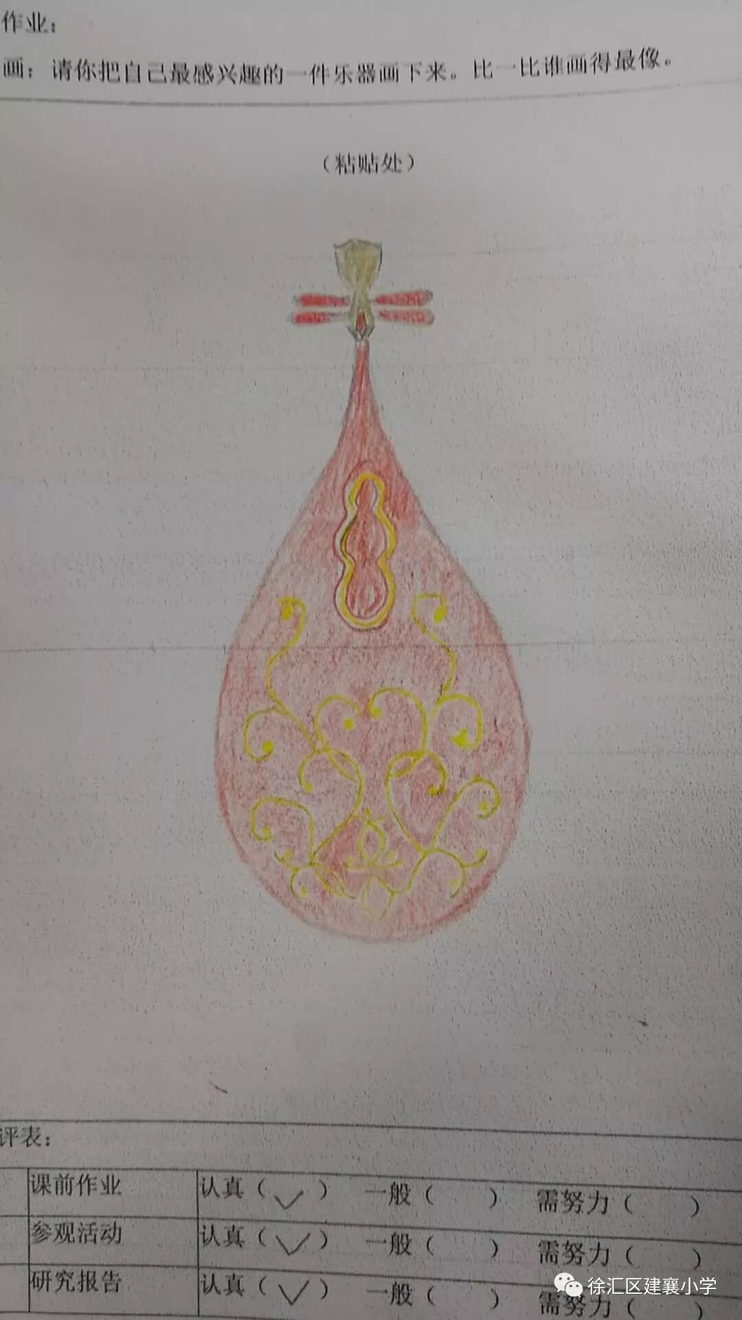 回到学校,孩子们用画笔把自己最感兴趣的一件乐器画了下来。