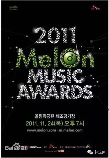 “Melon音乐颁奖典礼”(MelOn MusicAwards 简称:MMA)是韩国LOENEntertainment的在线音乐网站“MelOn”自2009年开始每年举办的韩国音乐颁奖礼,只遵循该网站音乐销售量和网上投票来决定得奖者。2009年,Melon首次举行实体的颁奖礼,并且获得了很高关注。