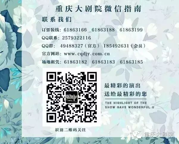 ”添加关注微信“重庆保利剧院”服务号可在线购票