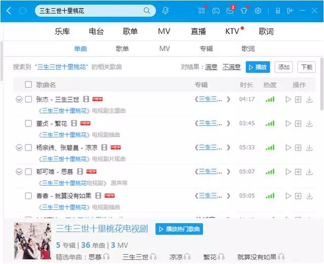 后来用回酷狗音乐,不对比不知道,网易云、虾米之类跟酷狗相比简直不是一个数量级,酷狗不仅新歌全,连我追过的一些剧,比如《三生三世十里桃花》啊,《青云志》啊基本上火的影视剧都有,这个实在太满意了!