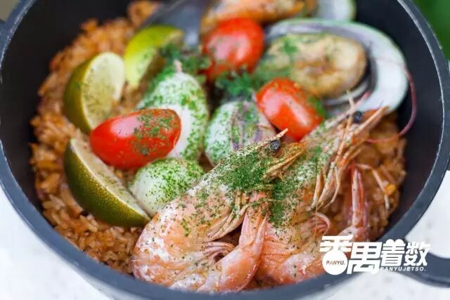 西班牙海鲜饭 有点微辣哦~最后撒上特殊调料,米饭颗颗入味。100% copy西班牙正宗风味。