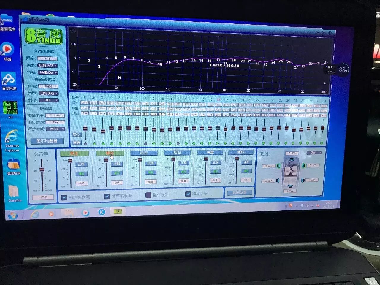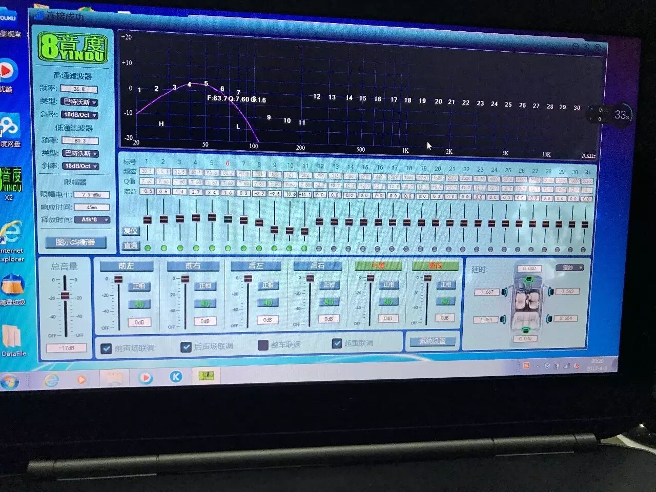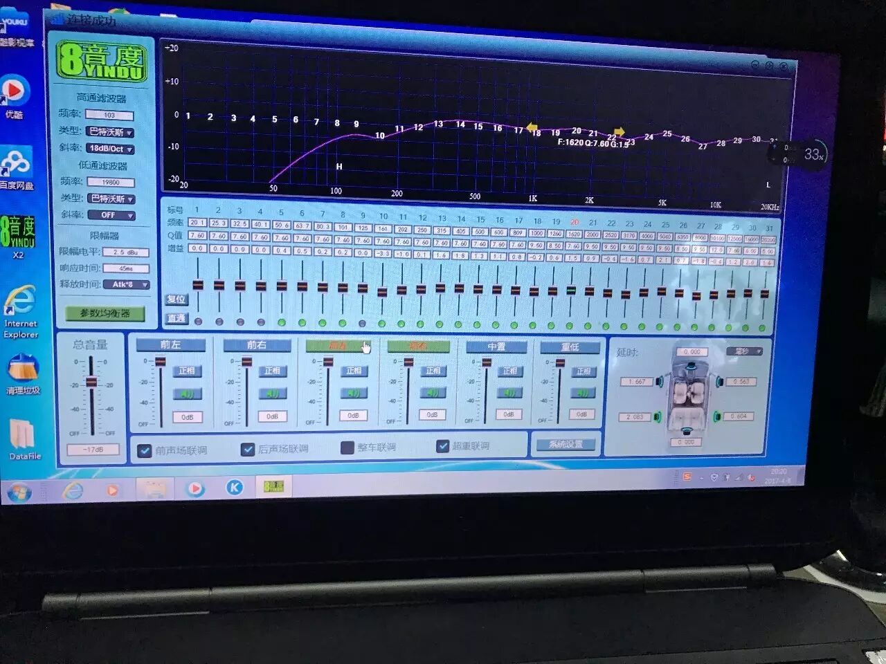 这位车主有幸来的时候刚好碰上AYT高级认证调音师张洪波在店,“我刚好专业,你刚好发烧”两个人就碰撞了络绎不绝的对【原车音响分析】:1.声音的清晰度不够,显得较为模糊,也就是所说的透彻。2.高频和中频并没有达到令人较为满意的频段,而且中音的下潜深度有着极大的可提升空间。3.缺少低音单,震撼感完全没有。