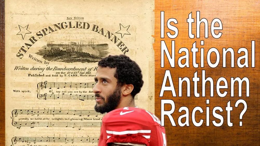 美国国歌是种族主义的说法由来已久,相信的人不少。.com在川普上台之前,2016年7月4日就发表了一篇被广泛阅读的文章:星条旗的种族偏见:美国国歌藏起来的种族主义历史(Star-Spangled Bigotry: The Hidden Racist History of the National Anthem)。 这篇文章发表以后不久,2016年9月,非裔球员Colin Kaepernick开始在奏国歌时下跪。