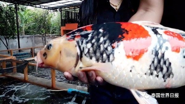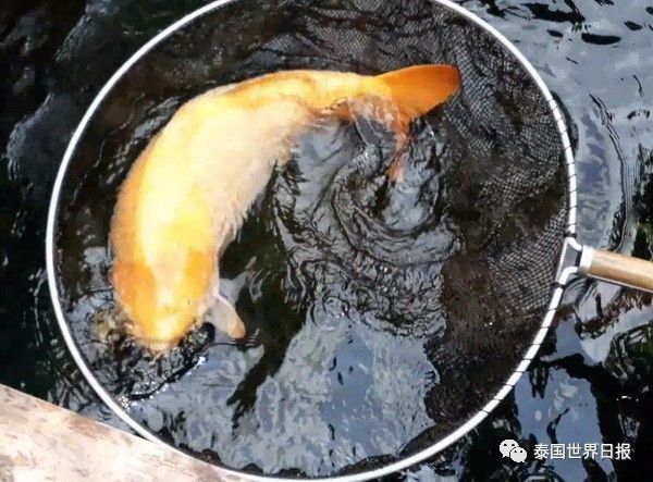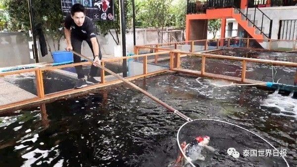 素可泰府宋胶洛县青年商人本亚武(30岁)养鱼场,近4年来以养殖从日本坂井养鱼场进口的『锦鲤御三家』而逐渐闻名泰国。最近,该县一位年轻商人巴斯(31岁),以150万铢高价,从本亚武的养鱼场买走一条身长1.15米的5岁金黄色和鲤(からし鲤),目前有人出价200万铢,但巴斯坚决不卖,因为泰国已经很难再遇到这么大条的和鲤。