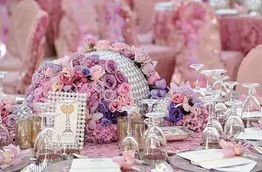 7、每个桌子上都放个具有特殊意义的摆件,如:鱼缸(有两尾鱼)、烛杯(含蜡烛)、许愿树(可以挂纸条)……凸显你们的婚礼主题个性。