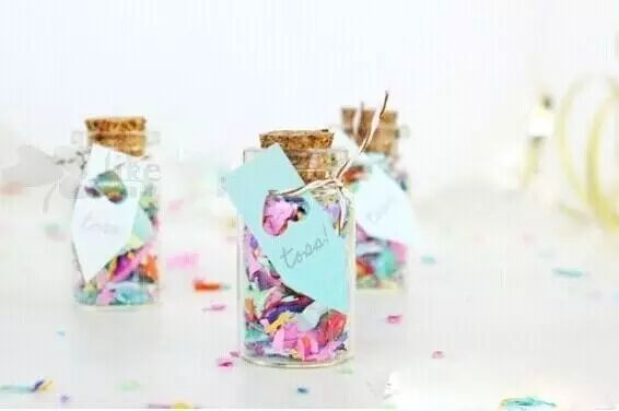 6、挑选一些不同颜色及形状的小纸片,供给来宾在仪式开始前签写对你们的祝福。在仪式的抛洒花瓣雨环节可以替代花瓣,也可以作为回礼抽签卡使用。