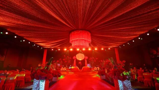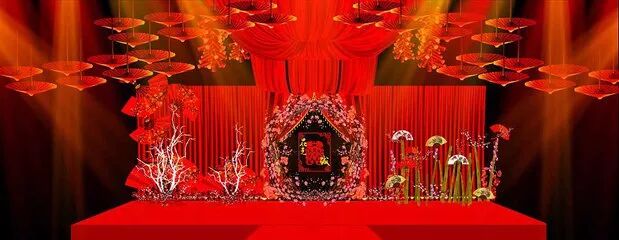 中式古典婚礼为主题,用红色营造一种喜庆而热烈的婚礼气氛。配以古色古香的装饰装点,喜气耀眼的舞台灯光,雍容华贵、典雅飘逸。