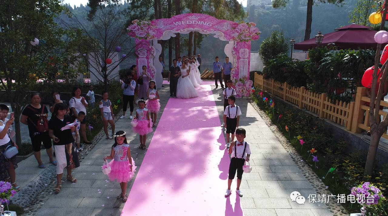 上午九点,7位身着美丽白纱的新娘在长辈的陪伴下,沿着荷花池走廊,伴随着浪漫、美妙的音乐缓缓步入公主亭。