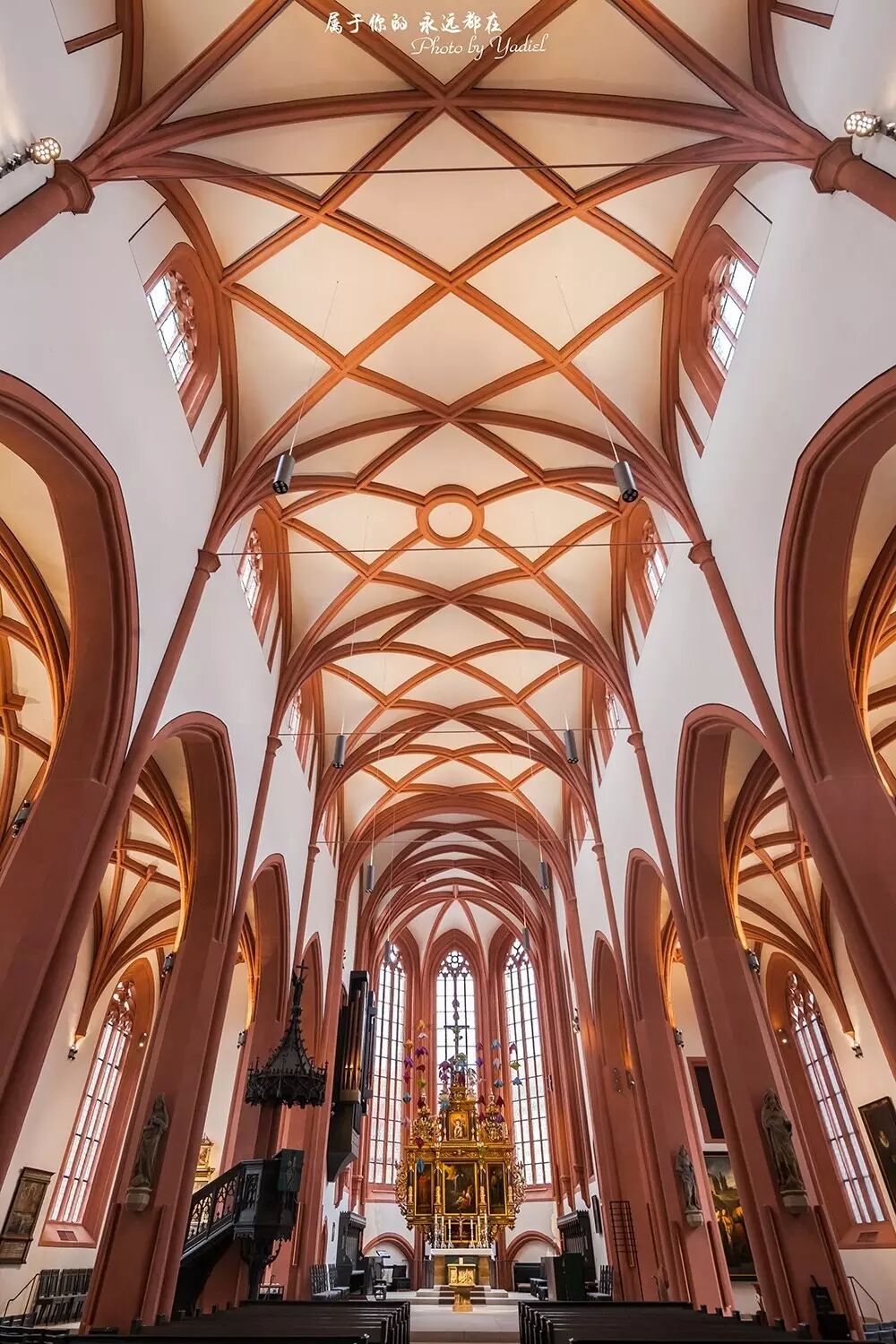走进教堂,踏过台阶,凝视着它顶部交叉的流畅的棕色线条,由柱子延生到空中,灵动至极。一股庄严感油然而生。经得住百年的风雨沧桑。每一个拱门、拱壁和每一处圆顶支撑,无不感动着建筑的恢弘。
